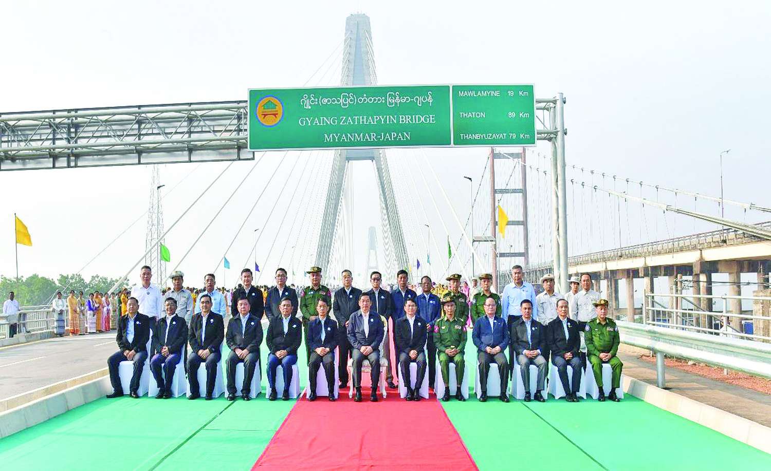 ယင်းနောက် နိုင်ငံတော်ဝန်ကြီးချုပ်နှင့်အဖွဲ့ဝင်များသည် အမှတ်တရစုပေါင်း မှတ်တမ်းတင်ဓာတ်ပုံရိုက်ကြပြီး အသစ်တည်ဆောက်ပြီးစီးသည့် တံတားကြီးပေါ်မှ ဖြတ်သန်းကြည့်ရှုခဲ့ကြသည်။