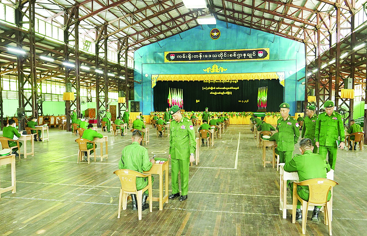၂၀၂၆ ခုနှစ် မတ်လ ၂၇ ရက်နေ့တွင် ကျရောက်မည့် (၈၁) နှစ်မြောက် တပ်မတော်နေ့ အထိမ်းအမှတ် စစ်သည်တော်ကျင့်ဝတ်ပြိုင်ပွဲကို ယနေ့နံနက်ပိုင်းတွင် ကမ်းရိုးတန်းဒေသတိုင်းစစ်ဌာနချုပ်ရှိ တိုင်းရန်အောင်ခန်းမ၌ပြုလုပ်ရာ တိုင်းမှူး ဗိုလ်ချုပ် ကျော်ကျော်ဟန်နှင့် တာဝန်ရှိသူများက စာမေးပွဲဖြေဆိုနေသည့် အရာရှိ၊ စစ်သည်များအား သွားရောက် ကြည့်ရှုအားပေးကြသည်။
