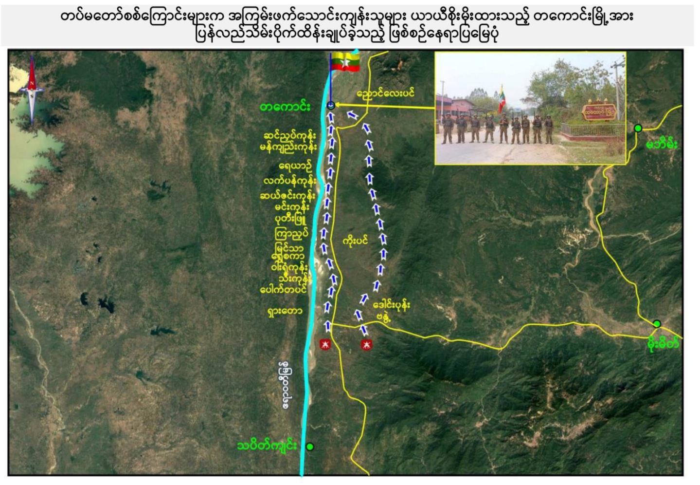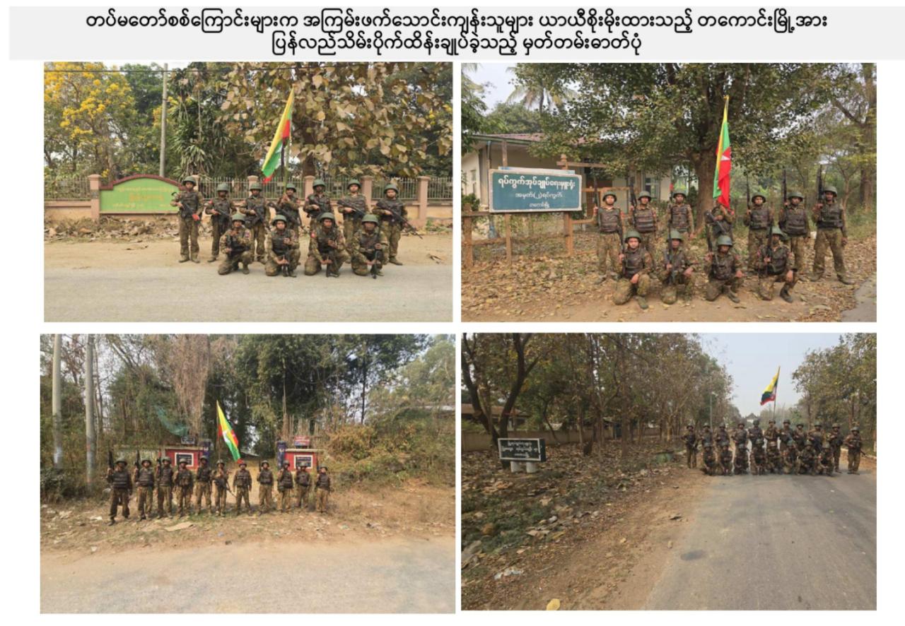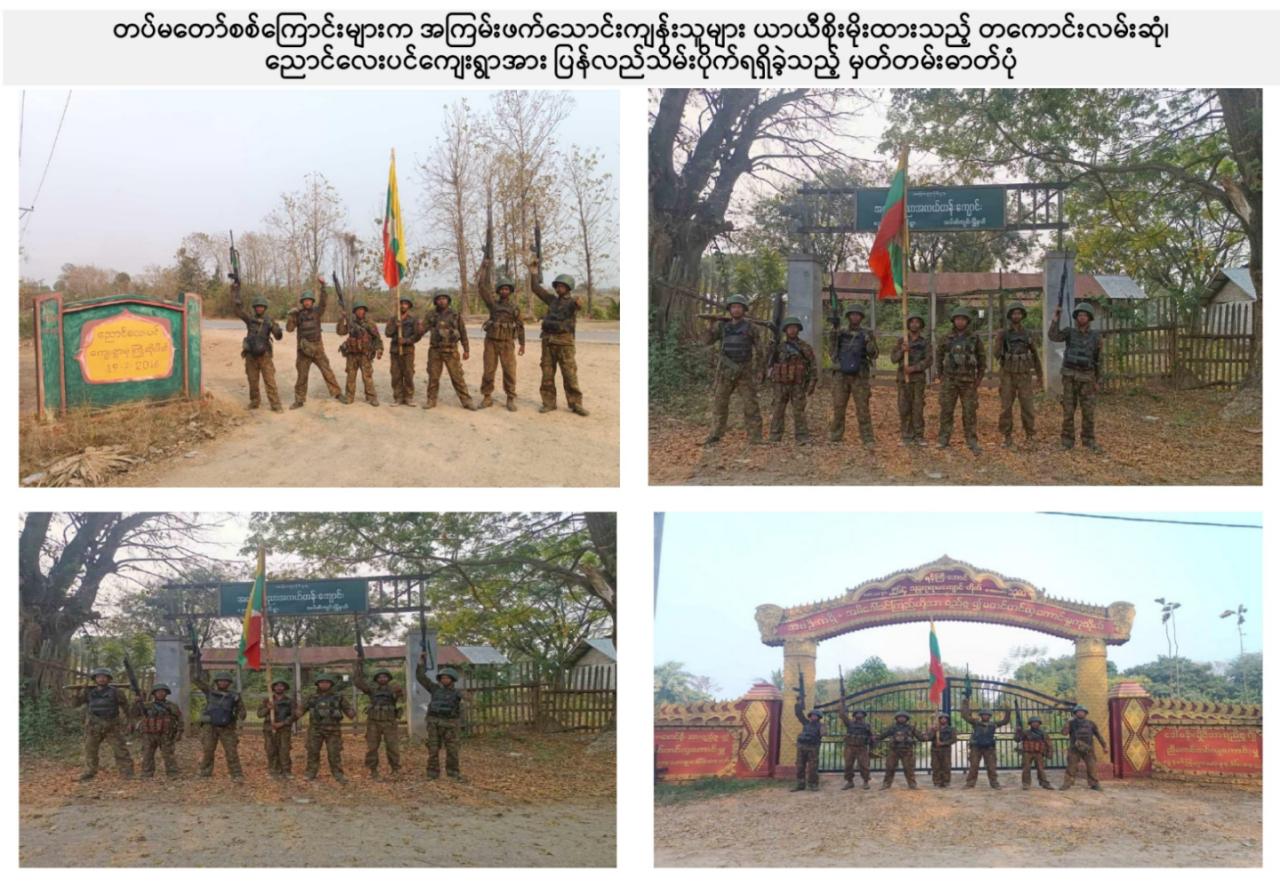 တပ်မတော်စစ်ကြောင်းများက NUG လက်ဝေခံ PDF အမည်ခံ အကြမ်းဖက်သောင်းကျန်းသူများ ယာယီစိုးမိုးထားသည့် တကောင်းမြို့အား ပြန်လည်သိမ်းပိုက်ထိန်းချုပ်၊ မိုင်းရှင်းလင်းရေးလုပ်ငန်းများနှင့် ပြန်လည်ထူထောင်ရေးလုပ်ငန်းများ ဆက်လက်ဆောင်ရွက်