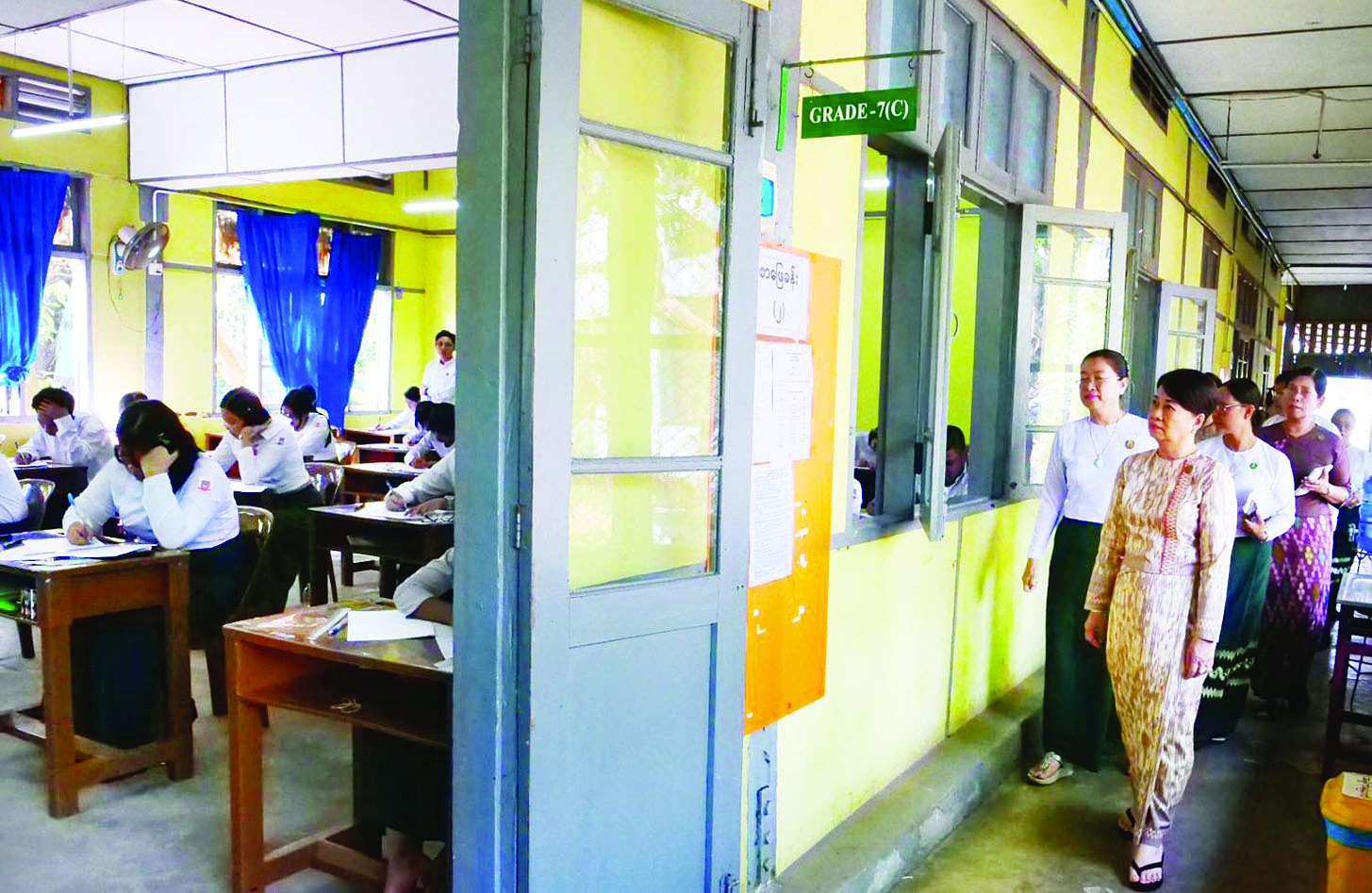 ကြည့်ရှုစဉ် တာဝန်ကျစာမေးပွဲကြီးကြပ်ရေးမှူးနှင့် လက်ထောက်ကြီးကြပ်ရေးမှူး ဆရာ ဆရာမများက စာဖြေသူများလိုက်နာရန် စာမေးပွဲစည်းမျဉ်းစည်းကမ်းများကို ဖတ်ကြားရှင်းပြခြင်း၊ ခုံအမှတ် မှန်ကန်မှုစစ်ဆေးခြင်း၊ မေးခွန်းစာမျက်နှာစုံလင်မှု စစ်ဆေးခြင်း၊ တာဝန်ကျစာမေးပွဲကြီးကြပ်ရေးမှူးနှင့် လက်ထောက်ကြီးကြပ်ရေးမှူး ဆရာဆရာမများက စာမေးပွဲစည်းမျဉ်း စည်းကမ်းနှင့်အညီ စနစ်တကျ ဆောင်ရွက်နေမှုများနှင့် ကျောင်းသားကျောင်းသူများ စိတ်အေးချမ်းသာစွာ ဖြေဆိုနေမှုတို့ကို ကြည့်ရှုအားပေးသည်။