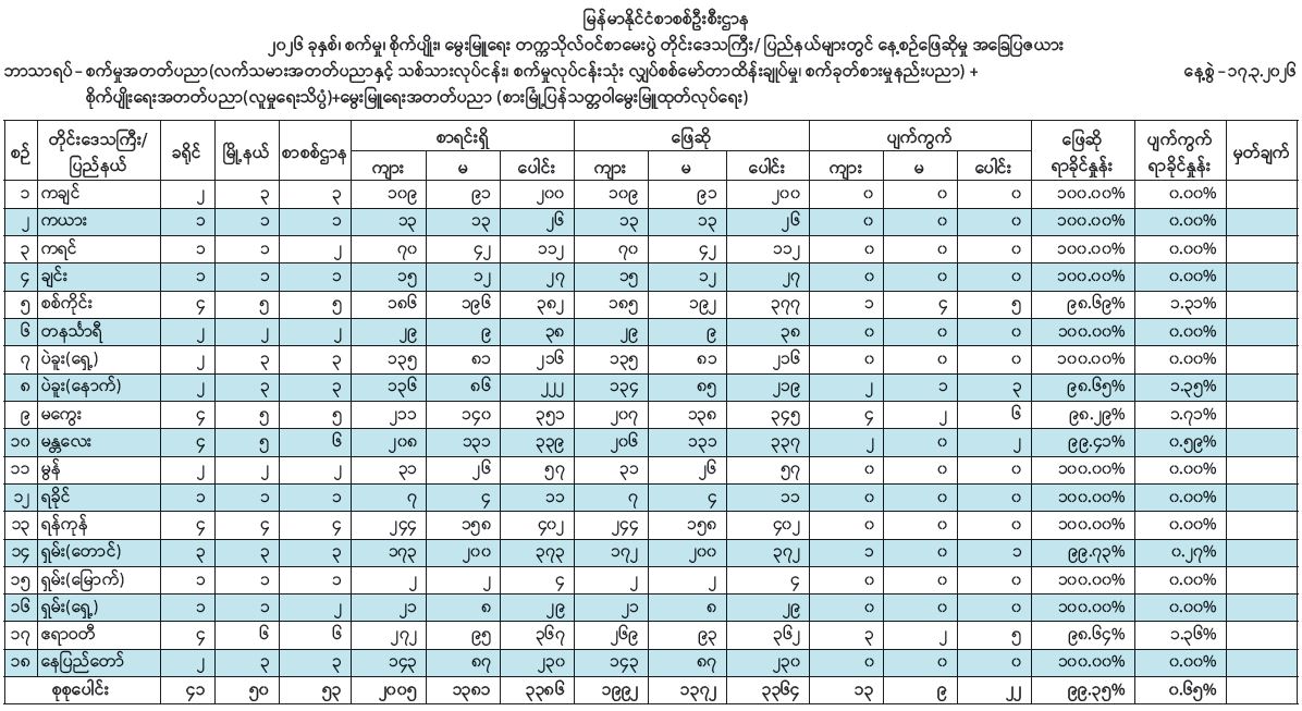 ၂၀၂၆ ခုနှစ် စက်မှု၊ စိုက်ပျိုး၊ မွေးမြူရေးတက္ကသိုလ်ဝင်စာမေးပွဲကို ပြည်တွင်းစာစစ်ဌာန စုစုပေါင်း ၅၃ ခု ဖွင့်လှစ်ဖြေဆိုခဲ့ရာ စက်မှုအတတ်ပညာဘာသာတွဲ၊ စိုက်ပျိုးရေးအတတ်ပညာဘာသာတွဲနှင့် မွေးမြူရေး အတတ်ပညာဘာသာတွဲများဖြေဆိုရန် စာရင်းပေးသွင်းသူဦးရေ စုစုပေါင်း ၃၃၈၆ ဦးရှိပြီး စာမေးပွဲ ဆဋ္ဌမနေ့တွင် စက်မှုကျောင်းသား ကျောင်းသူများက လက်သမားအတတ်ပညာနှင့် သစ်သားလုပ်ငန်း၊ စက်မှုလုပ်ငန်းသုံး လျှပ်စစ်မော်တာထိန်းချုပ်မှု၊ စက်ခုတ်စားမှုနည်းပညာဘာသာရပ်များ၊ စိုက်ပျိုးရေးကျောင်းသား ကျောင်းသူများက လူမှုရေးသိပ္ပံဘာသာရပ်နှင့် မွေးမြူရေးကျောင်းသား ကျောင်းသူများက စားမြုံ့ပြန်သတ္တဝါ မွေးမြူထုတ်လုပ်ရေးဘာသာရပ်တို့ကို ဖြေဆိုကြကာ လာရောက်ဖြေဆိုသူ စုစုပေါင်း ၃၃၆၄ ဦး၊ ပျက်ကွက် ၂၂ ဦးရှိပြီး ဖြေဆိုသူ ၉၉ ဒသမ ၃၅ ရာခိုင်နှုန်းရှိကြောင်း ပညာရေးဝန်ကြီးဌာနမှ သိရသည်။