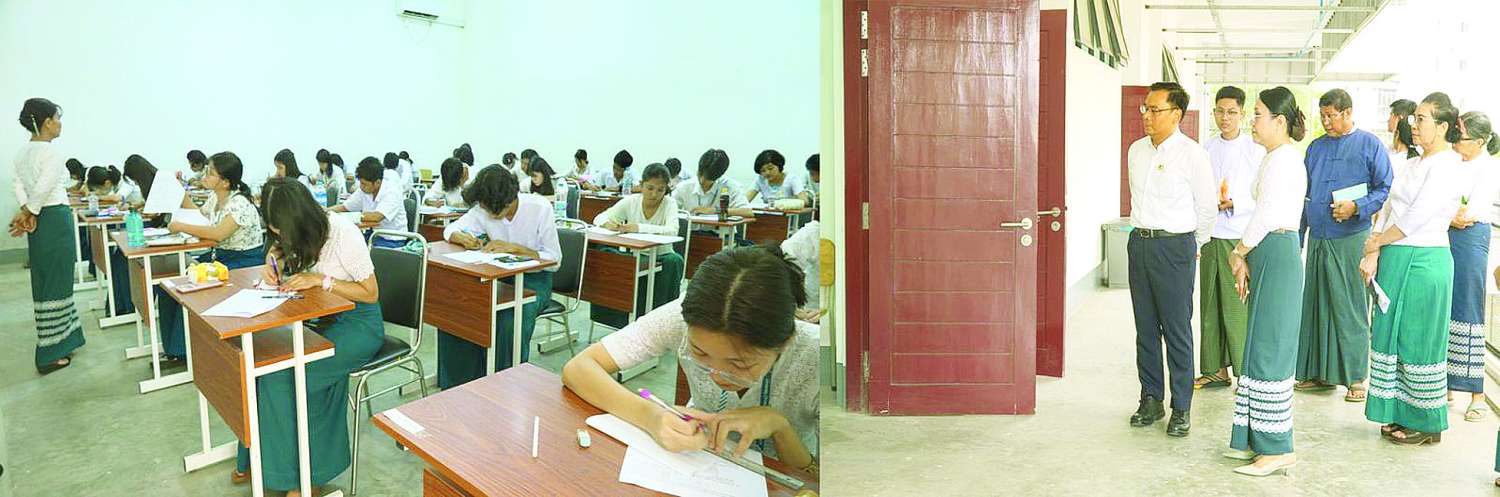 ရန်ကုန်နည်းပညာတက္ကသိုလ်နှင့် သတင်းအချက်အလက် နည်းပညာတက္ကသိုလ်တို့၌ ကျောင်းသားများ အေးချမ်းစွာ စာမေးပွဲဖြေဆိုနေမှုများကို ကြည့်ရှုအားပေး