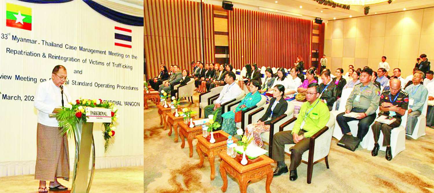 ဦးစွာ ဒုတိယဝန်ကြီးက မြန်မာနိုင်ငံနှင့် ထိုင်းနိုင်ငံနှစ်နိုင်ငံအကြားတွင် ၂၀၀၉ ခုနှစ် ဧပြီ ၁၉ ရက်မှစတင်၍ မြန်မာ-ထိုင်း လူကုန်ကူးမှုတိုက်ဖျက်ရေးဆိုင်ရာ နားလည်မှုစာချွန်လွှာကို လက်မှတ်ရေးထိုးခဲ့ပြီး လူကုန်ကူးမှုတိုက်ဖျက်ရေးနှင့် လူကုန်ကူးခံရသူများအား ကာကွယ်စောင့်ရှောက်ရေး လုပ်ငန်းများကို ပူးပေါင်းဆောင်ရွက်လျက်ရှိကြောင်း၊ မြန်မာနိုင်ငံအနေဖြင့် လူကုန်ကူးမှုတိုက်ဖျက်ရေးကို ထိုင်းနိုင်ငံအပါအဝင် ဒေသတွင်းနိုင်ငံများနှင့် တက်ကြွစွာ ပူးပေါင်းဆောင်ရွက်လျက်ရှိရာ အောင်မြင်သောရလဒ်ကောင်းများစွာရရှိ လျက်ရှိသကဲ့သို့ စိန်ခေါ်မှုများ လည်းရှိကြောင်း၊ လူကုန်ကူးခံရသူများအား ကာကွယ်စောင့်ရှောက် နေသူများအနေဖြင့် လူကုန်ကူး ခံရသူတစ်ဦးချင်းစီ၏ လိုအပ်ချက်များအရ ကူညီစောင့်ရှောက်မှုများကို ပူးပေါင်းဖြေရှင်းဆောင်ရွက်ကြသကဲ့သို့ ကာကွယ်တားဆီးရေး လုပ်ငန်းများကိုလည်း တိုးမြှင့်ဆောင်ရွက်ကြရမည်ဖြစ်ကြောင်း။