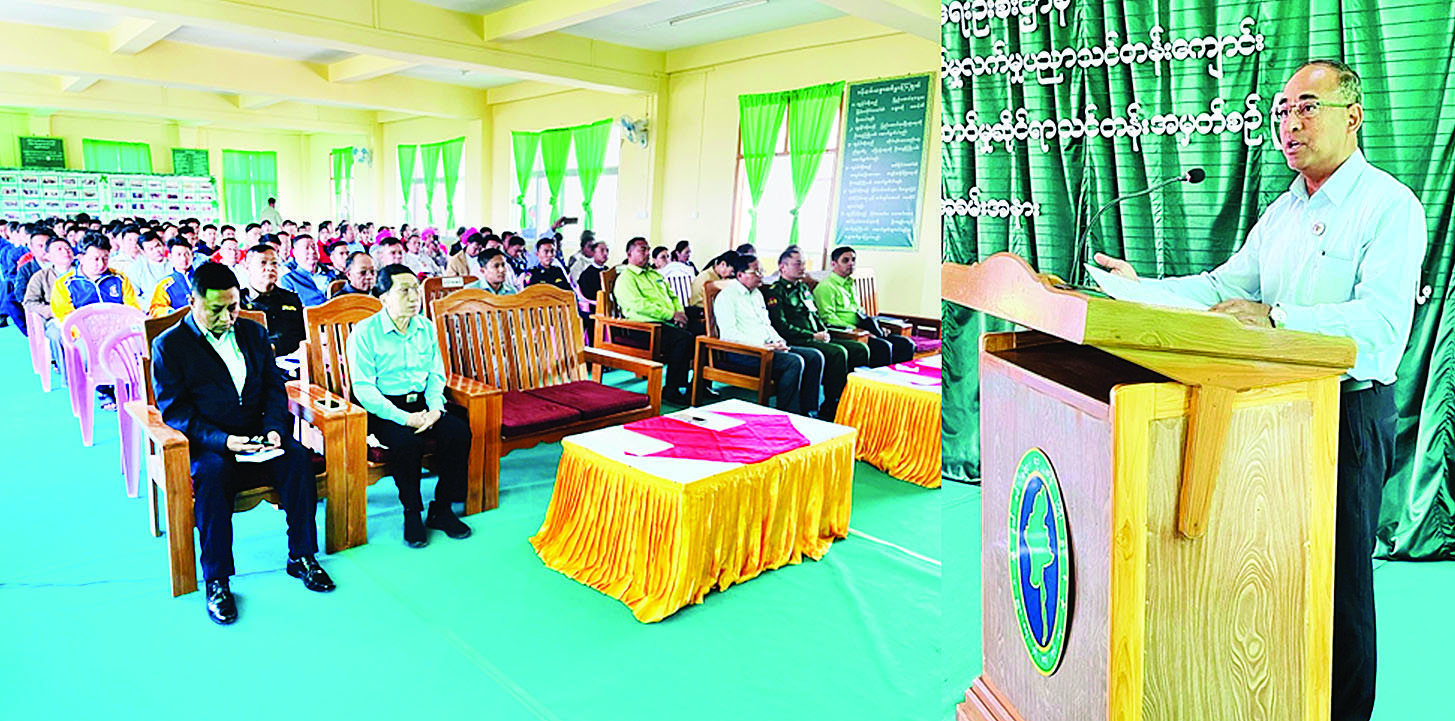 နယ်စပ်ရေးရာဝန်ကြီးဌာန ပညာရေးနှင့် လေ့ကျင့်ရေးဦးစီးဌာန ကွပ်ကဲမှုအောက်ရှိ နယ်စပ်ဒေသတိုင်းရင်းသားလူငယ်များ စက်မှုလက်မှုပညာ သင်တန်းကျောင်းသုံးကျောင်းနှင့် အမျိုးသမီးအိမ်တွင်းမှု သက်မွေးလုပ်ငန်း ပညာသင်တန်းကျောင်း ၁၃ ကျောင်းတို့၌ သက်မွေးဝမ်းကျောင်းသင်တန်းများ ဖွင့်လှစ်ခဲ့ရာ စက်မှုကျောင်းများတွင် ဆောက်လုပ်ရေးသင်တန်း၊ လျှပ်စစ်သင်တန်း၊ ဂဟေသင်တန်း၊ မော်တော်ယာဉ်စက်ပြင်သင်တန်း၊ လက်ကိုင်ဖုန်း ပြင်သင်တန်း၊ ဟိုတယ်ဝန်ဆောင်မှု ဆိုင်ရာသင်တန်းများ၊ အိမ်တွင်းမှု သင်တန်းကျောင်းများတွင် အဆင့်မြင့်အိမ်တွင်းမှု စက်ချုပ်သင်တန်းနှင့် ဟိုတယ်ဝန်ဆောင်မှုဆိုင်ရာသင်တန်းများ၏ သင်တန်းဆင်းပွဲများအား ယနေ့နံနက်ပိုင်းတွင်ကျင်းပခဲ့ရာ အောင်ပန်းမြို့ စက်မှုသင်တန်းကျောင်း၌ ရှမ်းပြည်နယ်ဝန်ကြီးချုပ် ဦးအောင်အောင် တက်ရောက်သင်တန်းဆင်း အမှာစကားပြောကြားသည်။