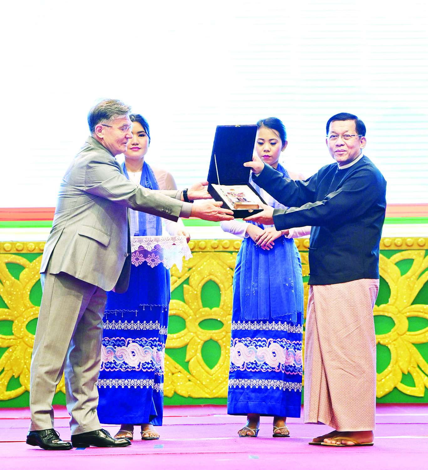 ဆက်လက်၍ ကော်မရှင်ဒုတိယဥက္ကဋ္ဌ ဒုတိယဗိုလ်ချုပ်မှူးကြီး စိုးဝင်းက နီပေါနိုင်ငံ ကယ်ဆယ်ရေးအဖွဲ့ကိုယ်စား မြန်မာနိုင်ငံဆိုင်ရာနီပေါနိုင်ငံ သံအမတ်ကြီးကိုလည်းကောင်း၊ ဘရာဇီးနိုင်ငံကယ်ဆယ်ရေးအဖွဲ့ကိုယ်စား ဘရာဇီးနိုင်ငံသံအမတ်ကြီးကိုလည်းကောင်း၊ ယူအေအီးနိုင်ငံကယ်ဆယ်ရေးအဖွဲ့ကိုယ်စား မြန်မာနိုင်ငံဆိုင်ရာ ယူအေအီးနိုင်ငံသံအမတ်ကြီးကို လည်းကောင်း၊ သီရိလင်္ကာနိုင်ငံကယ်ဆယ်ရေးအဖွဲ့ကိုယ်စား မြန်မာနိုင်ငံဆိုင်ရာ သီရိလင်္ကာ ဒီမိုကရက်တစ်ဆိုရှယ်လစ်သမ္မတနိုင်ငံ သံအမတ်ကြီးကိုလည်းကောင်း အမှတ်တရဂုဏ်ပြုတံဆိပ်များ ပေးအပ်ချီးမြှင့်သည်။