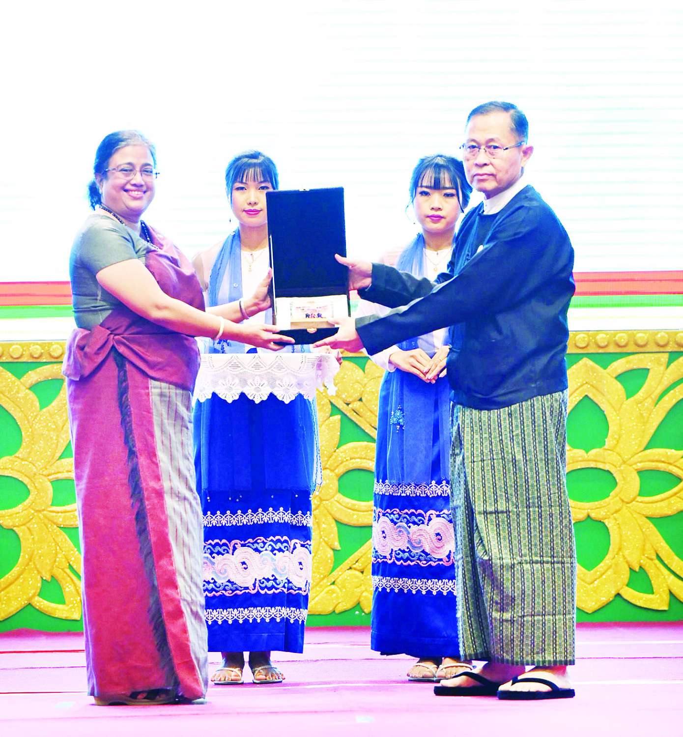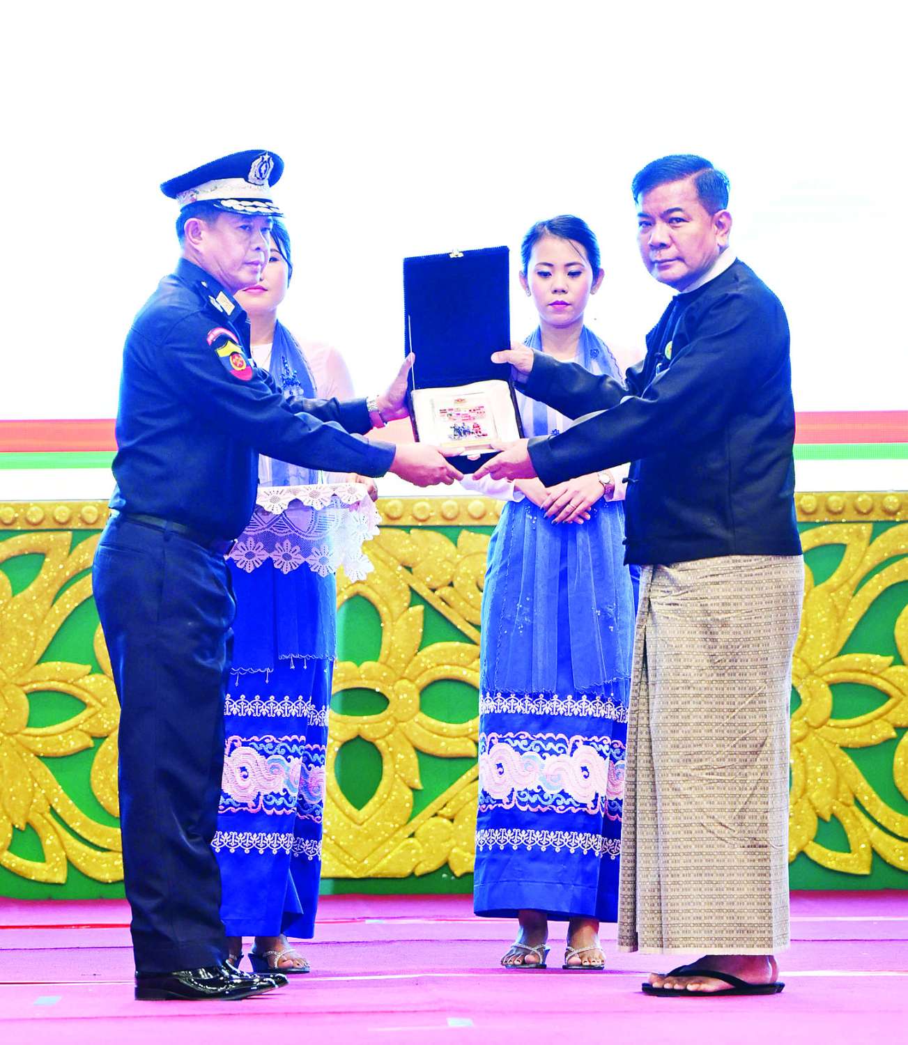 ယင်းနောက် မန္တလေးငလျင်ကြီး တုံ့ပြန်ရေးလုပ်ငန်းများတွင် ပါဝင်ဆောင်ရွက်ခဲ့သော ပြည်တွင်း/ပြည်ပ အဖွဲ့အစည်းများအား အမှတ်တရဂုဏ်ပြုတံဆိပ်များပေးအပ်ချီးမြှင့်ရာ နိုင်ငံတော်ယာယီသမ္မတ နိုင်ငံတော်လုံခြုံရေးနှင့် အေးချမ်းသာယာရေးကော်မရှင်ဥက္ကဋ္ဌက မန္တလေးငလျင်ကြီး တုံ့ပြန်ရေးလုပ်ငန်းများတွင် ပါဝင်ဆောင်ရွက်ခဲ့သော တပ်မတော်သားများကိုယ်စား တပ်မတော်အရာရှိကြီးတစ်ဦးကိုလည်းကောင်း၊ တရုတ်နိုင်ငံ ကယ်ဆယ်ရေးအဖွဲ့ကိုယ်စား မြန်မာနိုင်ငံဆိုင်ရာ တရုတ်နိုင်ငံသံအမတ်ကြီးကိုလည်းကောင်း၊ ရုရှားနိုင်ငံကယ်ဆယ်ရေးအဖွဲ့ကိုယ်စား မြန်မာနိုင်ငံဆိုင်ရာ ရုရှားဖက်ဒရေးရှင်းနိုင်ငံ သံအမတ်ကြီးကိုလည်းကောင်း၊ အိန္ဒိယနိုင်ငံကယ်ဆယ်ရေးအဖွဲ့ကိုယ်စား မြန်မာနိုင်ငံဆိုင်ရာ အိန္ဒိယသမ္မတနိုင်ငံသံအမတ်ကြီးကိုလည်းကောင်း အမှတ်တရဂုဏ်ပြုတံဆိပ်များ ပေးအပ်ချီးမြှင့်သည်။
