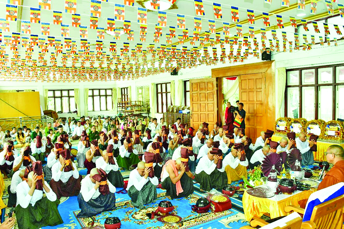ဆက်လက်၍ ယနေ့နံနက်ပိုင်းတွင် တိုင်းမှူးနှင့် အရာရှိ၊ စစ်သည်၊ မိသားစုများ၊ စေတနာရှင်အလှူရှင်များက ရဟန်းသာမဏေများအား သိမ်ဆင်းလောင်းလှူခဲ့ကြသည်။ ထို့နောက် အလှူတော်မင်္ဂလာ ရေစက်ချတရားနာယူခြင်းအခမ်းအနားကို မွန်းလွဲပိုင်းတွင် ကျင်းပရာ တိုင်းမှူးနှင့် တက်ရောက်လာကြသူများက စဝ်စံထွန်းရပ်ကွက် မင်္ဂလာဂူကျောင်းဆရာတော် ဘဒ္ဒန္တစန္ဒာသီရိထံမှ ငါးပါးသီလခံယူဆောက်တည်ကြပြီး သံဃာတော်များ ရွတ်ပွားချီးမြှင့်အပ်သော ပရိတ်တရားတော်များကို နာယူကြည်ညိုကြသည်။