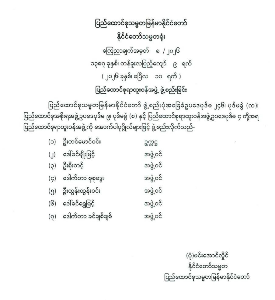 ပြည်ထောင်စုသမ္မတမြန်မာနိုင်ငံတော်၊ နိုင်ငံတော်သမ္မတရုံး အမိန့်အမှတ် (၃၆/၂၀၂၆)