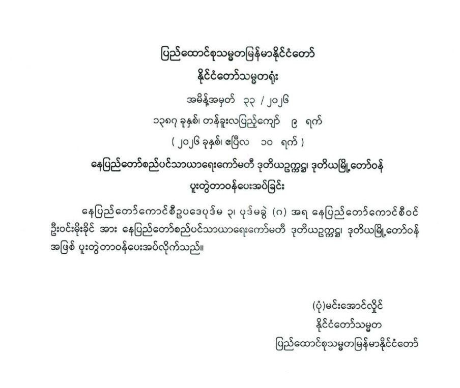 ပြည်ထောင်စုသမ္မတမြန်မာနိုင်ငံတော်၊ နိုင်ငံတော်သမ္မတရုံး အမိန့်အမှတ် (၃၆/၂၀၂၆)