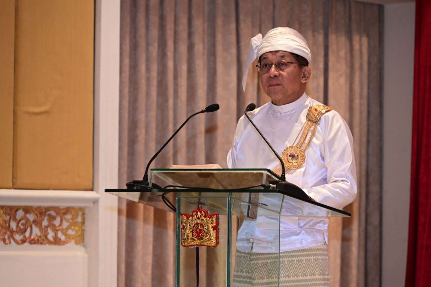 ပြည်ထောင်စုသမ္မတမြန်မာနိုင်ငံတော် နိုင်ငံတော်သမ္မတ ဦးမင်းအောင်လှိုင်က နိုင်ငံတော်အဆင့်ပုဂ္ဂိုလ်များ၊ ပြည်ထောင်စုအစိုးရအဖွဲ့ဝင်များ၊ တိုင်းဒေသကြီးအစိုးရ၊ ပြည်နယ်အစိုးရများမှ ဝန်ကြီးချုပ်များ၊ ဒုတိယဝန်ကြီးများအား တွေ့ဆုံမှာကြားသည့်မိန့်ခွန်း