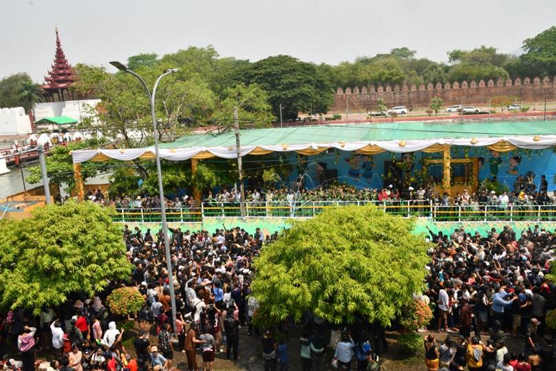 ထိုသို့ ယနေ့တွင်ကျရောက်သည့် မြန်မာ့ရိုးရာမဟာသင်္ကြန်အကျနေ့ကို ဆက်လက်ဆင်နွှဲလျက်ရှိရာ နေပြည်တော်တိုင်းစစ်ဌာနချုပ် စုပေါင်းအတာရေသဘင်မဏ္ဍပ်၌လည်းကောင်း၊ မြောက်ပိုင်းတိုင်းစစ်ဌာနချုပ် မြန်မာ့ရိုးရာနှစ်သစ်ကူး မဟာအတာသင်္ကြန်ဗဟိုမဏ္ဍပ်၌လည်းကောင်း၊ အရှေ့မြောက်တိုင်းစစ်ဌာနချုပ် နှစ်ဦးအားမာန်နေဝန်းနီသင်္ကြန်အတာရေကစားမဏ္ဍပ်၌လည်းကောင်း၊ အရှေ့ပိုင်းတိုင်းစစ်ဌာနချုပ် ရွှေနေကြာသင်္ကြန်မဏ္ဍပ်၌လည်းကောင်း၊ အရှေ့အလယ်ပိုင်းတိုင်းစစ်ဌာနချုပ်ဗဟိုမဏ္ဍပ်၌လည်းကောင်း၊ တြိဂံဒေသတိုင်းစစ်ဌာနချုပ် ရွှေတြိဂံမိသားစုမဟာသင်္ကြန်မဏ္ဍပ်၌လည်းကောင်း၊ အရှေ့တောင်တိုင်းစစ်ဌာနချုပ် မြန်မာ့ရိုးရာမဟာ အတာသင်္ကြန်ရေကစားမဏ္ဍပ်၌လည်းကောင်း၊ ကမ်းရိုးတန်းဒေသတိုင်းစစ်ဌာနချုပ် ပုလဲရွှေပြည်ရေကစားမဏ္ဍပ်၌လည်းကောင်း၊ ရန်ကုန်တိုင်းစစ်ဌာနချုပ် မိသားစုမဟာသင်္ကြန်ရေသဘင်ပွဲတော်မဏ္ဍပ်၌လည်းကောင်း၊ အနောက်တောင်တိုင်းစစ်ဌာနချုပ်ဗဟိုမဏ္ဍပ်၌လည်းကောင်း၊ စစ်တွေမြို့ရှိ မဟာသင်္ကြန်ဗဟိုမဏ္ဍပ်၌လည်းကောင်း၊ အနောက်မြောက်တိုင်းစစ်ဌာနချုပ်ဗဟိုမဏ္ဍပ်၌လည်းကောင်း၊ အလယ်ပိုင်းတိုင်းစစ်ဌာနချုပ် နန်းမြို့သူဖျော်ဖြေရေးမဏ္ဍပ်၊ မန္တလေးမြို့တော်မဟာသင်္ကြန်မဏ္ဍပ်နှင့် မင်္ဂလာမန္တလေးမဟာသင်္ကြန်မဏ္ဍပ်တို့၌လည်းကောင်း၊ တောင်ပိုင်းတိုင်းစစ်ဌာနချုပ် မြန်မာ့ရိုးရာယဉ်ကျေးမှုမဟာသင်္ကြန်ပွဲတော်ဗဟိုမဏ္ဍပ်၌လည်းကောင်း၊ တပ်နယ်အသီးသီးရှိ ရေကစားမဏ္ဍပ်များ၌လည်းကောင်း အတာရေသဘင်ပွဲများ ဆက်လက်ဆင်နွှဲကြရာ တိုင်းဒေသကြီးနှင့် ပြည်နယ်များမှ ဝန်ကြီးချုပ်များ၊ သက်ဆိုင်ရာ တိုင်းစစ်ဌာနချုပ်အသီးသီးမှ တိုင်းမှူးများနှင့် တာဝန်ရှိသူများကသွားရောက်၍ အတာသင်္ကြန်ယိမ်းအကအဖွဲ့များ၏ ယှဉ်ပြိုင်ဖျော်ဖြေမှုများကို ကြည့်ရှုအားပေးပြီး ဂုဏ်ပြုချီးမြှင့်ငွေများ ပေးအပ်ကြသည်။