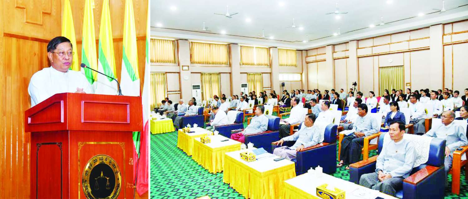 ဦးစွာ ပြည်ထောင်စုဝန်ကြီးက ဧပြီ ၁၀ ရက်တွင် ပြည်ထောင်စုလွှတ်တော်၌ကျင်းပခဲ့သော ကတိသစ္စာပြုပွဲအခမ်းအနားနှင့် နိုင်ငံတော်သမ္မတ၏ ဧည့်ဆောင်တော်၌ကျင်းပသည့် နိုင်ငံတော်သမ္မတ၏ မိန့်ခွန်းနာခံခြင်းနှင့် ကတိသစ္စာပြုခြင်း အခမ်းအနားတွင် နိုင်ငံတော်သမ္မတက နိုင်ငံတော်တည်ငြိမ်အေးချမ်းရေးနှင့် ဖွံ့ဖြိုးတိုးတက်ရေးကိုအလေးထား၍ ဦးစားပေး အကောင်အထည်ဖော် ဆောင်ရွက်သွားမည်ဖြစ်ကြောင်း၊ အစိုးရသစ်၏ ရည်မှန်းချက်များဖြစ်သော စစ်မှန်ပြီး စည်းကမ်းပြည့်ဝသည့် ပါတီစုံဒီမိုကရေစီစနစ် ခိုင်မာစေရေး၊ ဒီမိုကရေစီနှင့် ဖက်ဒရယ်စနစ်ကိုအခြေခံသည့် ပြည်ထောင်စုတည်ဆောက်ရေးလုပ်ငန်းစဉ်များကို ဆက်လက်အကောင်အထည်ဖော်ရေး ဆောင်ရွက်သွားမည်ဖြစ်ကြောင်း၊ နိုင်ငံတော်၏ စီးပွားရေး ဖွံ့ဖြိုးတိုးတက်မှု၊ ပြည်သူတို့၏ ပညာရေး၊ ကျန်းမာရေးနှင့် လူ့စွမ်းအားအရင်းအမြစ် ဖွံ့ဖြိုးတိုးတက်ရေး၊ နိုင်ငံတကာဆက်ဆံရေး၊ တရားမျှတမှုနှင့် ဥပဒေပြဋ္ဌာန်းရေးဆိုင်ရာကိစ္စရပ်များကို အကောင်အထည်ဖော် ဆောင်ရွက်သွားမည်တို့ကို လမ်းညွှန်မှာကြားခဲ့ကြောင်း။