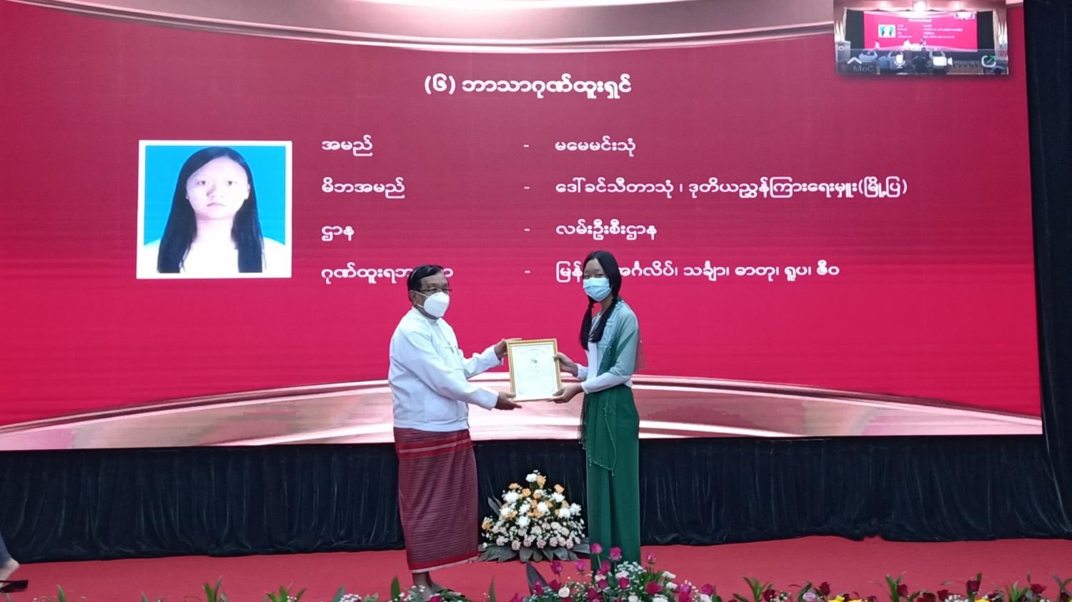 ဆက်လက်၍ အမြဲတမ်းအတွင်းဝန် ဦးရွှေလေးက ဦးစီးဌာနများမှ လုပ်ငန်းခွင်အတွင်း စွမ်းစွမ်း တမံ ကြိုးပမ်းဆောင်ရွက်ခဲ့သည့် ဝန်ထမ်းများကိုလည်းကောင်း၊ ၂၀၁၉ - ၂၀၂၀ ပညာသင်နှစ် တက္ကသိုလ်ဝင်စာမေးပွဲတွင် လေးဘာသာဂုဏ်ထူးရရှိသူ (၁၉) ဦးကိုလည်း ကောင်း ဂုဏ်ပြုမှတ်တမ်းလွှာများ ပေးအပ်သည်။