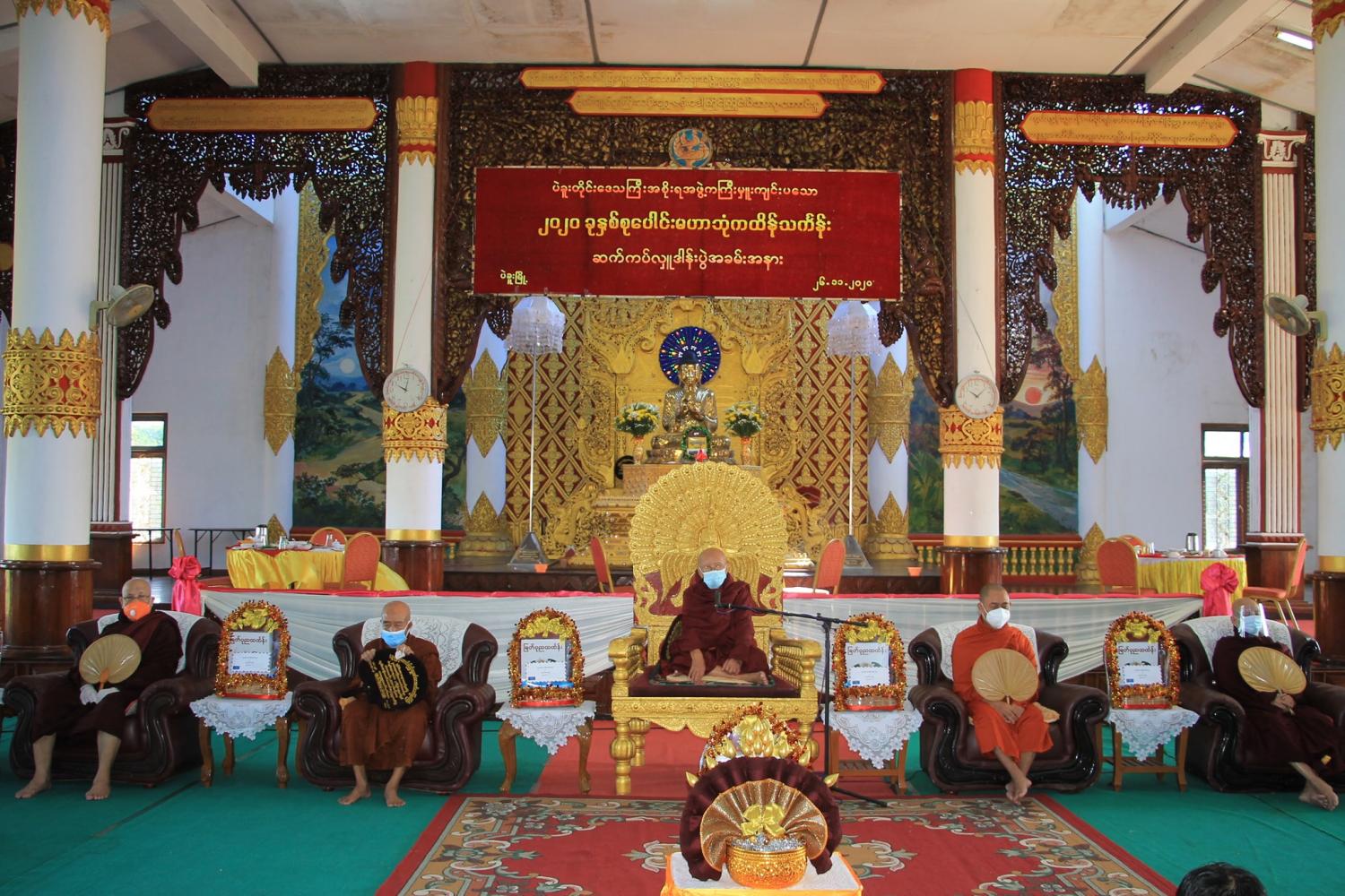 ထို့နောက် တိုင်းဝန်ကြီးချုပ်ဦးဝင်းသိန်းက ပဲခူးမြို့ ကျောင်းထိုင်ဘုန်းကြီး သင်တန်းကျောင်း ဆရာတော်အား ကထိန်သင်္ကန်းဆက်ကပ်လှူဒါန်းပြီး အစိုးရအဖွဲ့ဝန်ကြီးများ၊ စာရင်းစစ်ချုပ် ဒေါ်သန်းသန်းဝင်း၊ အတွင်းရေးမှူး ဦးခင်မောင်ဆန်းနှင့် ဌာနဆိုင်ရာများက ဆရာတော်ကြီး များအား သင်္ကန်းနှင့်လှူဖွယ်ဝတ္ထု ပစ္စည်းများ ဆက်ကပ်လှူဒါန်းကြသည်။