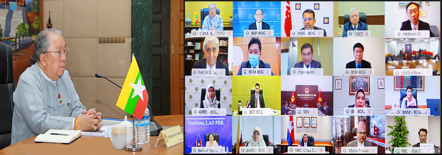 အရှေ့တောင်အာရှ ဗဟိုဘဏ်များအဖွဲ့ (South East Aisan Central Banks) နှင့် အလှည့်ကျ ဥက္ကဋ္ဌ ဘရူနိုင်းငွေကြေး အာဏာပိုင်အဖွဲ့တို့ ကြီးမှူးကျင်းပသည့် (၅၆) ကြိမ်မြောက် အရှေ့ တောင် အာရှဗဟိုဘဏ်များအဖွဲ့ဂါဗာနာများညီလာခံ (56th SEACEN Governors’ Conference) နှင့် အကြိမ် (၄၀) မြောက် အရှေ့တောင်အာရှ ဗဟိုဘဏ်များအဖွဲ့ ဂါဗာနာဘုတ် အဖွဲ့အစည်း အဝေး (40th SEACEN Board Of Governors Meeting) ယမန်နေ့နံနက် ၉ နာရီက Video Conferencing စနစ်ဖြင့် ကျင်းပသည်။