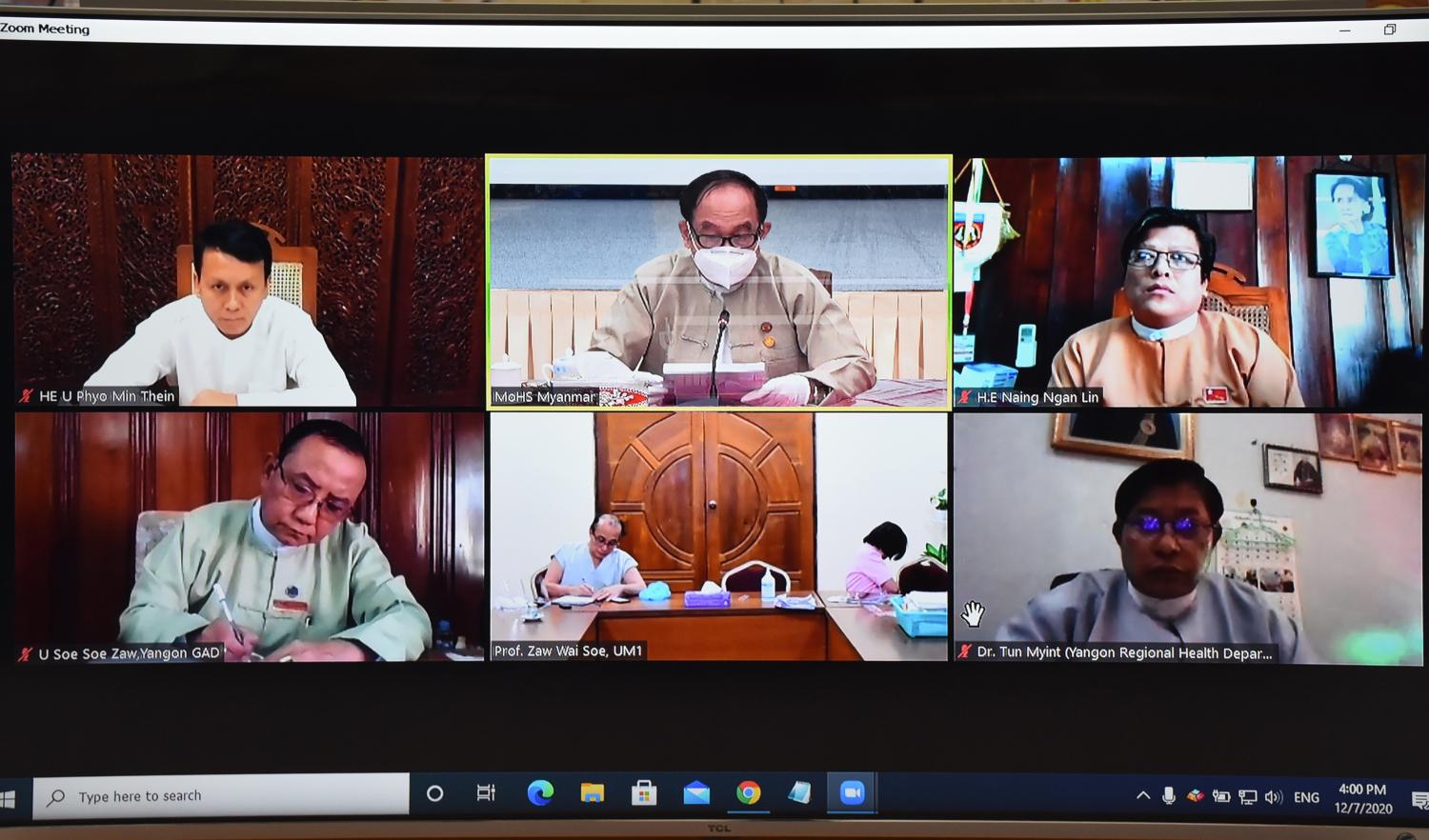 ကျန်းမာရေးနှင့်အားကစားဝန်ကြီးဌာန၊ ပြည်ထောင်စုဝန်ကြီး ဒေါက်တာမြင့်ထွေးသည် ရန်ကုန် တိုင်းဒေသကြီး ဝန်ကြီးချုပ် ဦးဖြိုးမင်းသိန်းနှင့် ရန်ကုန်တိုင်းဒေသကြီး အစိုးရအဖွဲ့ဝင်များကို   ယမန်‌နေ့ ညနေပိုင်းက Videoconferencing စနစ်ဖြင့် ချိတ်ဆက်တွေ့ဆုံပြီး ရန်ကုန် တိုင်းဒေသကြီးတွင် ကိုဗစ်-၁၉ ကာကွယ်ရေးစည်းကမ်းများ တိကျစွာ လိုက်နာဆောင်ရွက်ရေး ကြီးကြပ်ဆောင်ရွက်မည့် အစီအစဉ်များကို ဆွေးနွေးသည်။