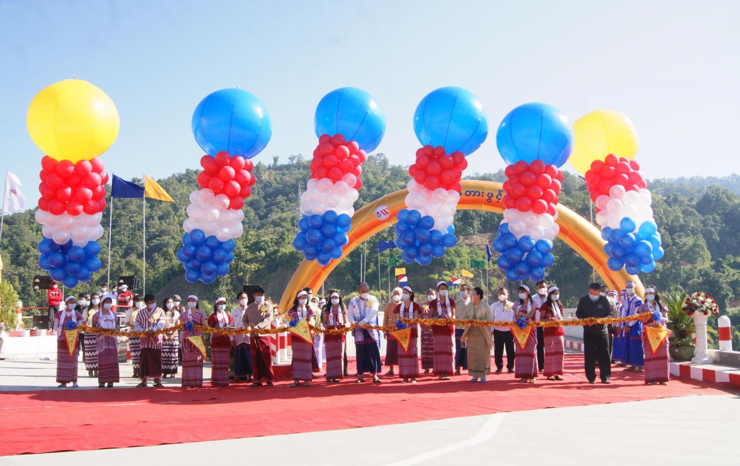 ယင်းနောက် အမျိုးသားလွှတ်တော်ဥက္ကဋ္ဌ မန်းဝင်းခိုင်သန်းနှင့် ကရင်ပြည်နယ်ဝန်ကြီးချုပ် ဒေါ်နန်းခင်ထွေးမြင့် တို့က တံတားကမ္ဗည်းကျောက်စာအား စက်ခလုတ်နှိပ်ဖွင့်လှစ်ပေးသည်။