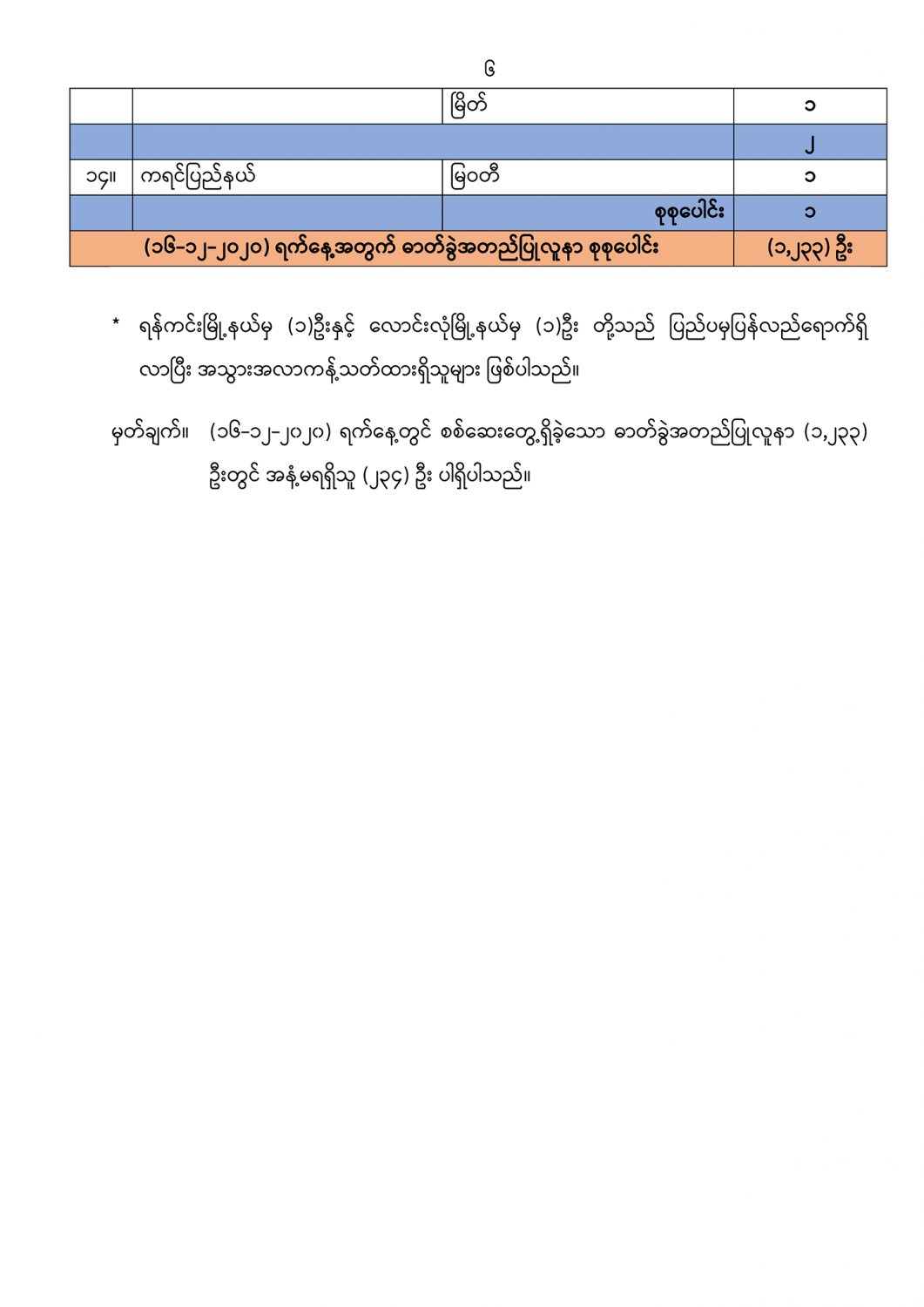 (၁၆-၁၂-၂၀၂၀) ရက်နေ့ ဓာတ်ခွဲစစ်ဆေးမှုများ၌ တွေ့ရှိခဲ့သော ဓာတ်ခွဲအတည်ပြုလူနာ (၁,၂၃၃) ဦး၏ မြို့နယ်အလိုက် တွေ့ရှိရမှုအခြေအနေမှာ အောက်ပါအတိုင်း ဖြစ်ပါသည်။