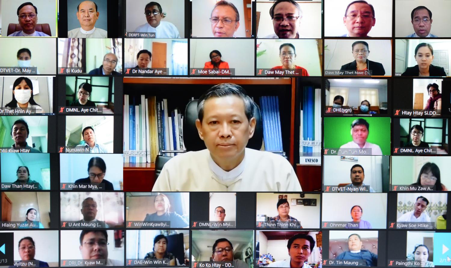 အမျိုးသားပညာရေးမဟာဗျူဟာစီမံကိန်း (၂၀၂၁-၂၀၃၀) (National Education Strategic Plan-NESP 2021-2030) ရေးဆွဲခြင်းအတွက် ပညာရေးဝန်ကြီးဌာန ဝန်ကြီးရုံးနှင့် ဦးစီးဌာနများမှ အရာထမ်းများ၊ စိတ်ပါဝင်စားသူ အမှုထမ်းများနှင့် NESP 2 ရေးဆွဲရေးအဖွဲ့များ (Drafting Teams) နှင့် ရှင်းလင်းဆွေးနွေးပွဲကို ယနေ့ နံနက် ၉ နာရီခွဲတွင် နေပြည်တော်၊ ပညာရေးဝန်ကြီးဌာနမှ ဗီဒီယို ကွန်ဖရင့်စနစ်ဖြင့် ကျင်းပသည်။
