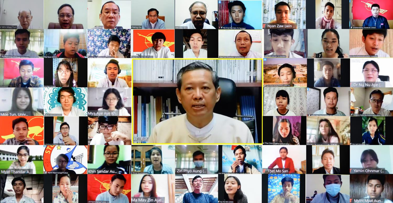 အစည်းအဝေးသို့ ပညာရေးဝန်ကြီးဌာန၊ ပြည်ထောင်စုဝန်ကြီး ဒေါက်တာ မျိုးသိမ်းကြီး၊ ဒုတိယဝန်ကြီး ဦးဝင်းမော်ထွန်း၊ ပညာရေးဝန်ကြီးဌာန အမြဲတမ်းအတွင်းဝန်နှင့် ညွှန်ကြားရေးမှူး ချုပ်များ၊ ကျောင်းသားသမဂ္ဂများ၊ တက္ကသိုလ်၊ ဒီဂရီကောလိပ်၊ သိပ္ပံများမှ ကျောင်းသား ကျောင်းသူများ၊ ကိုယ်စားလှယ်များနှင့် သက်ဆိုင်ရာတာဝန်ရှိသူများ ပါဝင် ဆွေးနွေးကြသည်။