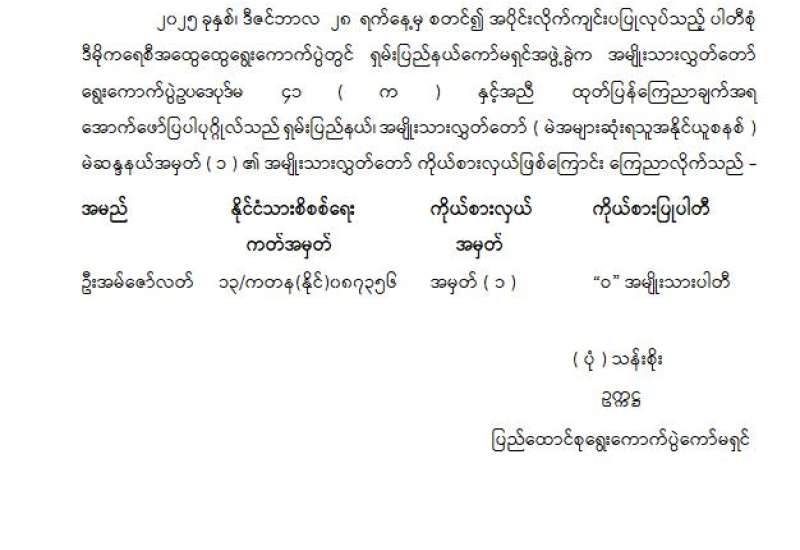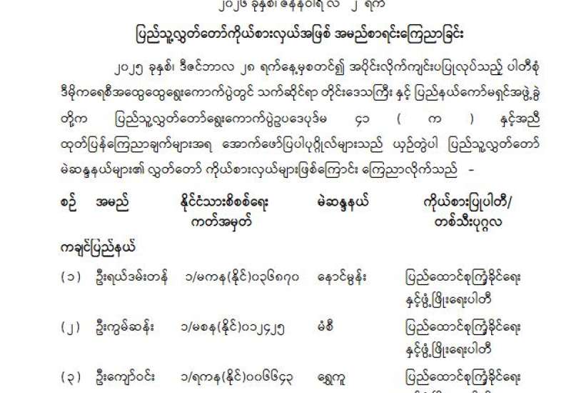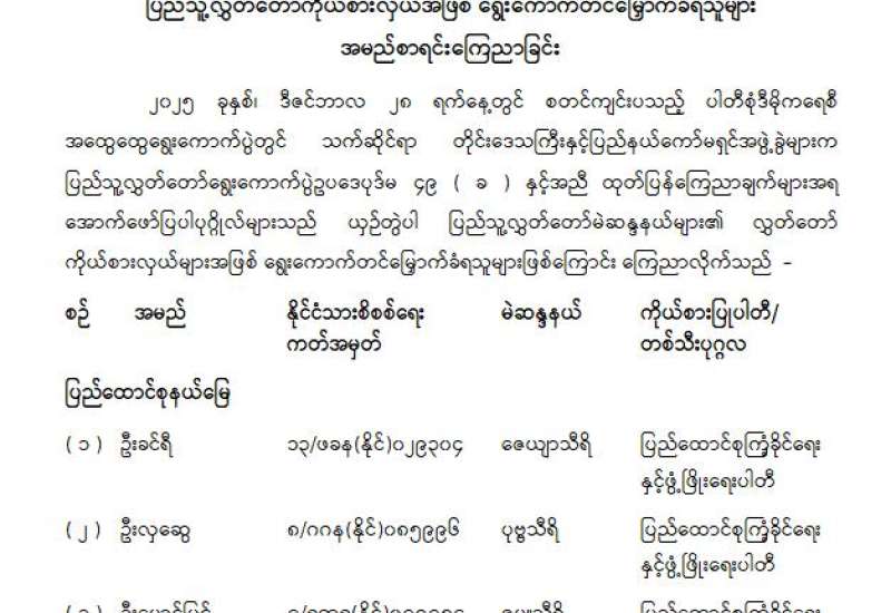 ပြည်သူ့လွှတ်တော်ကိုယ်စားလှယ်အဖြစ် အမည်စာရင်းကြေညာခြင်း