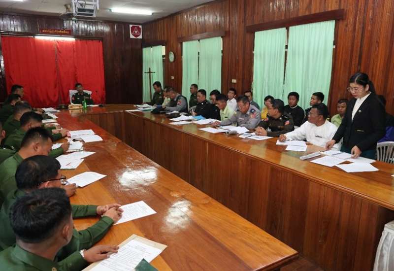 ရှမ်းပြည်နယ်(အရှေ့ပိုင်း)၊ မိုင်းတုံမြို့နယ်၌ ၂၀၂၅ ခုနှစ်၊ ပါတီစုံဒီမိုကရေစီအထွေထွေရွေးကောက်ပွဲအပိုင်း (၂) အောင်မြင်စွာကျင်းပနိုင်ရေး လုပ်ငန်းညှိနှိုင်းအစည်းအဝေးကို ယနေ့ညနေပိုင်းတွင် မိုင်းတုံမြို့ရှိ နယ်မြေခံတပ်ရင်းဌာနချုပ် အစည်းအဝေးခန်းမ၌ ပြုလုပ်ရာ တိုင်းမှူး ဗိုလ်ချုပ် စိုးလှိုင်နှင့် တာဝန်ရှိသူများ၊ ခရိုင်၊ မြို့နယ်ရွေးကောက်ပွဲကော်မရှင်အဖွဲ့ခွဲမှ တာဝန်ရှိသူများ၊ ဌာနေပြည်သူ့စစ်အဖွဲ့ဝင်များ၊ ဌာနဆိုင်ရာတာဝန်ရှိသူများနှင့် ဖိတ်ကြားထားသူများ တက်ရောက်ကြသည်။