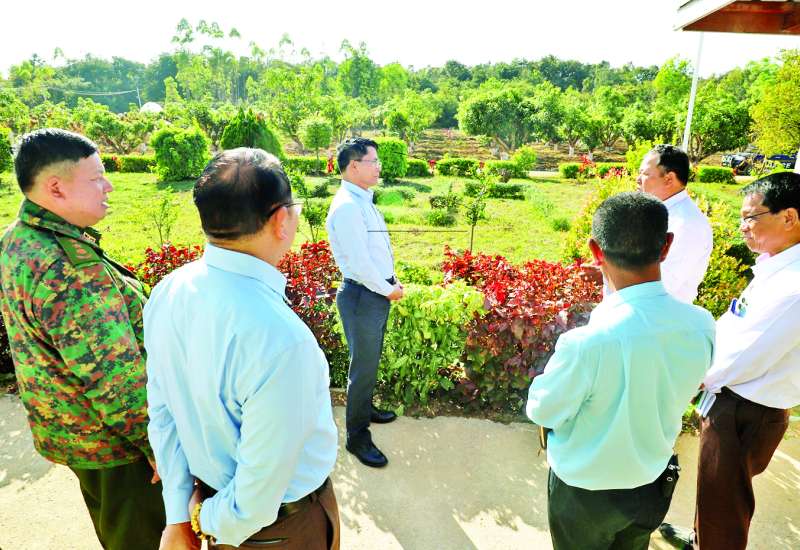စိုက်ပျိုးရေး၊ မွေးမြူရေးနှင့်ဆည်မြောင်းဝန်ကြီးဌာန ပြည်ထောင်စုဝန်ကြီး ဦးမင်းနောင်သည် ရှမ်းပြည်နယ်လုံခြုံရေးနှင့် နယ်စပ်ရေးရာဝန်ကြီးနှင့်အတူ ယနေ့နံနက်ပိုင်းတွင် တောင်ကြီးမြို့နယ် ရွှေညောင်မြို့ရှိ စိုက်ပျိုးရေးဦးစီးဌာန၏ နမ့်လတ်ဥယျာဉ်ခြံသို့ သွားရောက်ပြီး ဒေသ၏စိုက်ပျိုးထုတ်လုပ်မှုတိုးတက်ရေး၊ စိုက်ပျိုးနည်းပညာ ပြန့်ပွား ရေးလုပ်ငန်းဆောင်ရွက်နေမှုများကို ကြည့်ရှုစစ်ဆေးသည်။