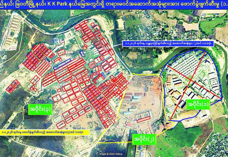 မြန်မာနိုင်ငံအစိုးရအနေဖြင့် အွန်လိုင်းလိမ်လည်လောင်းကစားမှုများ အများဆုံးအခြေချလုပ်ကိုင် လျက်ရှိကြသည့် ရွှေကုက္ကိုလ် နယ်မြေနှင့် KK Park နယ်မြေများရှိ တရားမဝင်အဆောက်အအုံများအတွင်း ဝင်ရောက်ရှင်းလင်း၍ အွန်လိုင်းလိမ်လည် လောင်းကစားမှု လုပ်ငန်းစဉ်များတွင်အသုံးပြုခဲ့သည့် သိမ်းဆည်းရမိပစ္စည်းများနှင့် တရားမဝင် အဆောက်အအုံများအား စနစ်တကျ ဖြိုချဖျက်ဆီးခြင်းများကို အဖွဲ့စုံပါဝင်သည့် ပူးပေါင်းအဖွဲ့ဖြင့် ဆောင်ရွက်လျက်ရှိရာ ယနေ့တွင်လည်း KK Park နယ်မြေအတွင်းရှိ တရားမဝင်အဆောက်အအုံ ၁၁ လုံးကို ထပ်မံဖြိုချဖျက်ဆီးခဲ့ကြောင်း သိရသည်။