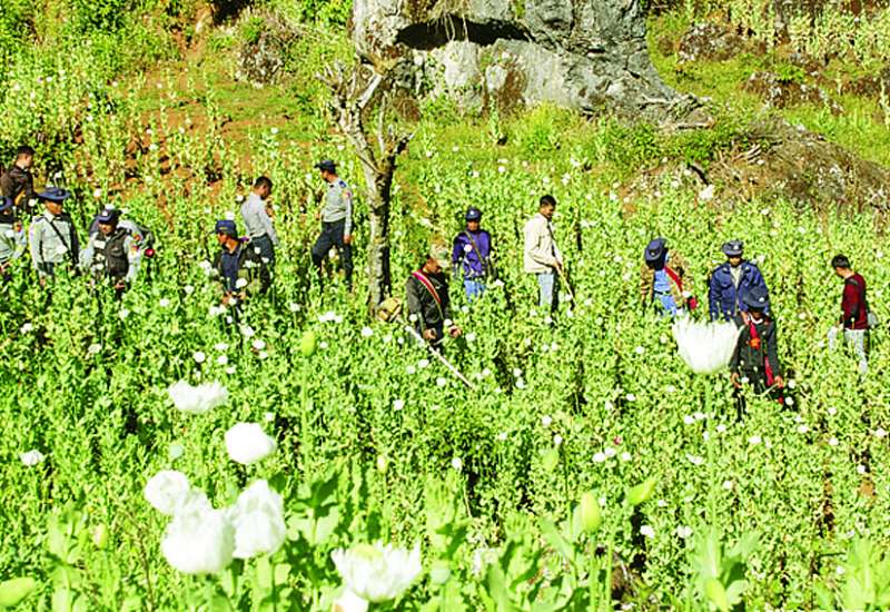 ရှမ်းပြည်နယ်(တောင်ပိုင်း)ပင်လောင်း၊ ဆီဆိုင်၊ ဟိုပုံးမြို့နှင့် လွိုင်လင်မြို့နယ်တို့၌ ဒီဇင်ဘာ ၃၁ ရက်က စုစုပေါင်းဘိန်းစိုက်ခင်း ၂၀၂ ဧကခန့်အား ဖျက်ဆီးခဲ့ကြောင်း သိရသည်။