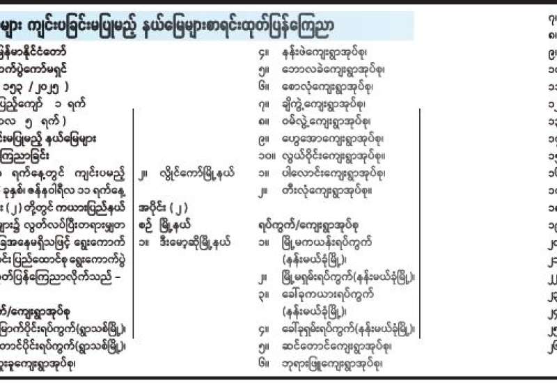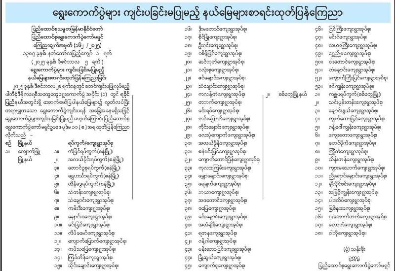 ရွေးကောက်ပွဲများ ကျင်းပခြင်းမပြုမည့် နယ်မြေများစာရင်းထုတ်ပြန်ကြေညာ
