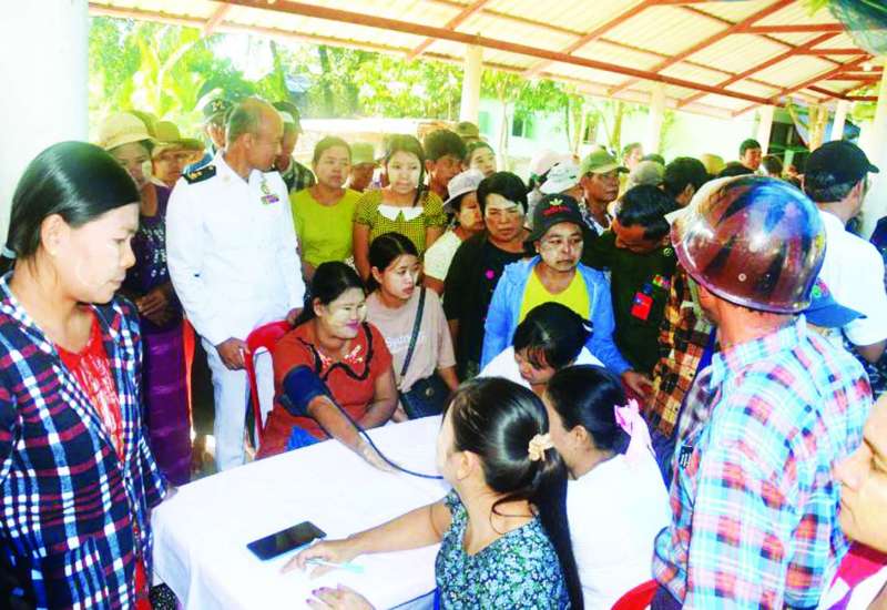 ရန်ကုန်တိုင်းဒေသကြီး ကိုကိုးကျွန်းမြို့နယ်နှင့် ဧရာဝတီတိုင်းဒေသကြီး ဟိုင်းကြီးကျွန်းမြို့နယ်အတွင်းရှိ ကျေးရွာများနှင့် ပတ်ဝန်းကျင်ကျေးရွာများမှ ဒေသခံပြည်သူများအား ကျန်းမာရေးစောင့်ရှောက်မှုလုပ်ငန်းများ ဆောင်ရွက်ပေးရန်အတွက် တပ်မတော်ပင်လယ်သွား ဆေးရုံရေယာဉ် (သံလွင်) ဖြင့် ရောက်ရှိနေ သည့် တပ်မတော်မှ ပါရဂူများ၊ ဆေးမှူးများနှင့် သူနာပြုများ ပါဝင်သော တပ်မတော်နယ်လှည့်အထူးဆေးအဖွဲ့သည် ယနေ့တွင် ငပုတောမြို့နယ် ကျုံကူးကျေးရွာ စိတ္တသုခဘုန်းတော်ကြီးကျောင်း၌ အခြေပြု၍ ကျုံကူးကျေးရွာနှင့် ပတ်ဝန်းကျင်ကျေးရွာများမှ ဒေသခံပြည်သူ ၅၃၃ ဦးအား ကျန်းမာရေးစောင့်ရှောက်မှုလုပ်ငန်းများ ဆက်လက်ဆောင်ရွက်ပေးသည်။