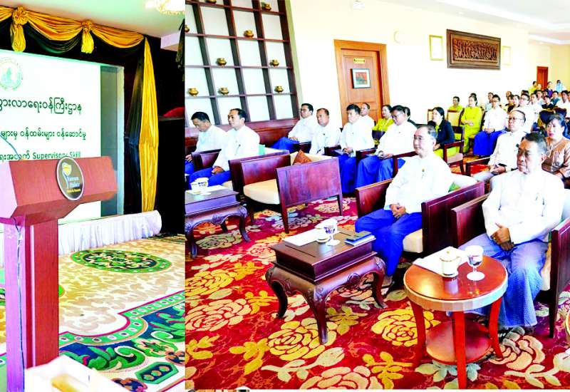 ဟိုတယ်နှင့်ခရီးသွားလုပ်ငန်းကဏ္ဍရှိ ဝန်ထမ်းများ စွမ်းဆောင်ရည်မြင့်မားပြီး ခရီးသွားလုပ်ငန်းကဏ္ဍ ရေရှည်ဖွံ့ဖြိုးတိုးတက်စေရေးနှင့် ဟိုတယ်ဆိုင်ရာဝန်ဆောင်မှုလုပ်ငန်းများနှင့် ဆက်စပ်လုပ်ငန်းများ၌ ကျွမ်းကျင်လုပ်သားများပေါ်ထွက်လာစေရေး၊ လူ့စွမ်းအားအရင်းအမြစ်များ ဖွံ့ဖြိုးတိုးတက်လာစေရေးအတွက် ပြည်ထောင်စုနယ်မြေ နေပြည်တော်ရှိ ဟိုတယ်များမှ မန်နေဂျာ၊ ကြီးကြပ်ရေးမှူးဝန်ထမ်းများအတွက် ခေါင်းဆောင်မှုနှင့် ဝန်ဆောင်မှုစွမ်းရည်မြှင့်တင်ရေး သင်တန်းဖွင့်ပွဲ အခမ်းအနားကို ယနေ့နံနက်ပိုင်းတွင် နေပြည်တော် Aureum Palace ဟိုတယ်၌ ကျင်းပသည်။
