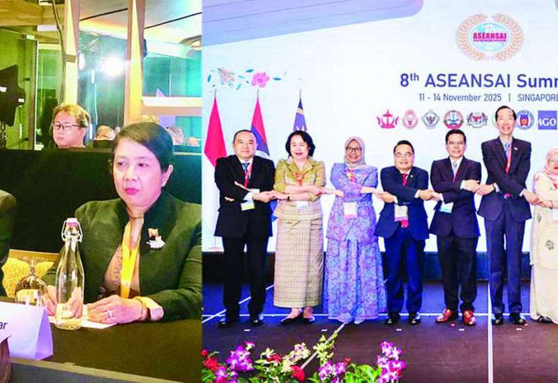 စင်ကာပူနိုင်ငံ၌ နိုဝင်ဘာ ၁၂ ရက်မှ ၁၄ ရက်အထိ ကျင်းပသည့် အရှေ့တောင်အာရှနိုင်ငံများဆိုင်ရာ စာရင်းစစ်ချုပ်ရုံးများအဖွဲ့ (ASEANSAI)၏ (၈) ကြိမ်မြောက် ထိပ်သီးအစည်းအဝေးသို့ ပြည်ထောင်စုစာရင်းစစ်ချုပ် ဒေါက်တာခင်နိုင်ဦး ဦးဆောင်သော မြန်မာကိုယ်စားလှယ်အဖွဲ့ တက်ရောက်ခဲ့ပြီး ယနေ့ညနေပိုင်းတွင် ရန်ကုန်မြို့သို့ ပြန်လည်ရောက်ရှိသည်။