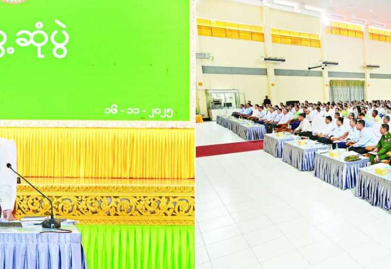 ပြည်ထောင်စုသမ္မတ မြန်မာနိုင်ငံတော်ယာယီသမ္မတ နိုင်ငံတော်လုံခြုံရေးနှင့် အေးချမ်းသာယာရေးကော်မရှင်ဥက္ကဋ္ဌ ဗိုလ်ချုပ်မှူးကြီး မင်းအောင်လှိုင်သည် မွန်ပြည်နယ်ရှိ ပြည်နယ်၊ ခရိုင်၊ မြို့နယ်အဆင့်ဌာနဆိုင်ရာတာဝန်ရှိသူများ၊ မြို့မိ မြို့ဖများအား ယနေ့နံနက်ပိုင်းတွင် မော်လမြိုင်မြို့ရှိ ပြည်နယ်ခန်းမ၌ တွေ့ဆုံ၍ ဒေသဖွံ့ဖြိုးတိုးတက်ရေးဆိုင်ရာများ ဆွေးနွေးပြောကြားသည်။