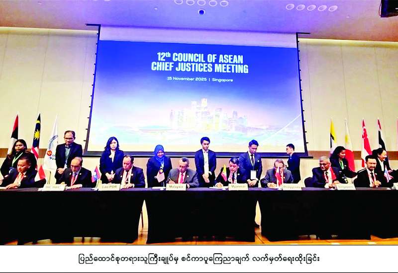 ပြည်ထောင်စုတရားသူကြီးချုပ် ဦးသာဌေးဦးဆောင်သည့် မြန်မာကိုယ်စားလှယ်အဖွဲ့သည် စင်ကာပူနိုင်ငံ တရားလွှတ်တော်ချုပ် တရားသူကြီးချုပ် The Hon. Sundaresh Menon ၏ ဖိတ်ကြားချက်အရ နိုဝင်ဘာ ၁၃ ရက်မှ ၁၅ ရက်အထိ စင်ကာပူနိုင်ငံတွင် ကျင်းပသည့် “(၁၂) ကြိမ်မြောက် အာဆီယံတရားသူကြီးချုပ်များ ကောင်စီအစည်းအဝေး” သို့ တက်ရောက်သည်။