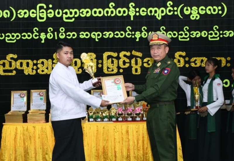 မန္တလေးမြို့ နန်းမြို့တွင်းရှိ အမှတ်(၁၈)အခြေခံပညာအထက်တန်းကျောင်း၏ မိဘဆရာအသင်းနှစ်ပတ်လည်အစည်းအဝေးနှင့် ပညာရည်ထူးချွန်ဆုချီးမြှင့်ပွဲကို ယနေ့နံနက်ပိုင်းတွင် အဆိုပါကျောင်းခန်းမ၌ပြုလုပ်ရာ အလယ်ပိုင်းတိုင်းစစ်ဌာနချုပ် တိုင်းမှူး ဗိုလ်မှူးချုပ် တင်မင်းလတ်နှင့်တာဝန်ရှိသူများ၊ ဆရာ/ဆရာမများ၊ ကျောင်းသား/ကျောင်းသူများ၊ ကျောင်းအကျိုးတော်ဆောင်များ၊ ကျောင်းသားမိဘများနှင့်ဖိတ်ကြားထားသူများ တက်ရောက်ကြသည်။