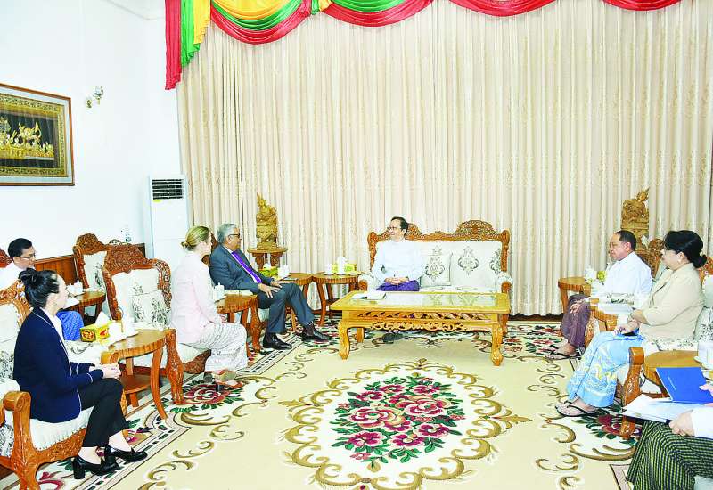 ကျန်းမာရေးဝန်ကြီးဌာန ပြည်ထောင်စုဝန်ကြီး ဒေါက်တာသက်ခိုင်ဝင်းသည် ဘန်ကောက်မြို့အခြေစိုက်ကုလသမဂ္ဂစီမံကိန်းဝန်ဆောင်မှုရုံး (UNOPS)၏ အာရှဒေသဆိုင်ရာရုံးညွှန်ကြားရေးမှူး Mr. Sanjay Mathur နှင့်ကိုယ်စားလှယ်အဖွဲ့အား ယနေ့ နံနက်ပိုင်းတွင် ကျန်းမာရေးဝန်ကြီးဌာနအစည်းအဝေးခန်းမ၌ လက်ခံတွေ့ဆုံသည်။