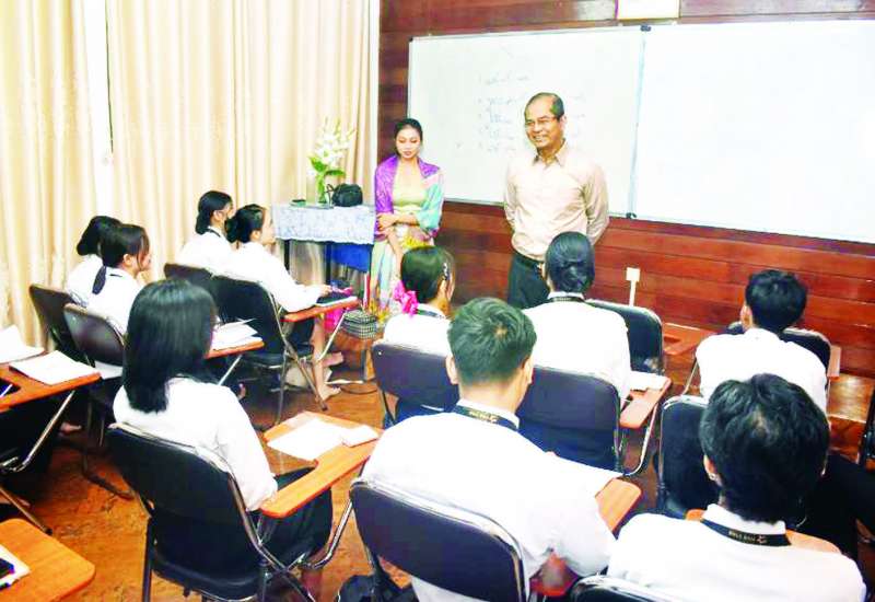 အလုပ်သမားဝန်ကြီးဌာန ဒုတိယဝန်ကြီး ဦးဝင်းရှိန်သည် ယနေ့နံနက်ပိုင်းတွင် ရန်ကုန်တိုင်းဒေသကြီးရှိ အလုပ်သမားရေးရာ တာဝန်ရှိသူများနှင့်အတူ ကမာရွတ်မြို့နယ်ရှိ National Management Academy တွင် ဟိုတယ်လုပ်ငန်းဆိုင်ရာ အသက်မွေးပညာသင်တန်းများ ဖွင့်လှစ်ပို့ချနေမှုများကို ကြည့်ရှုအားပေးသည်။