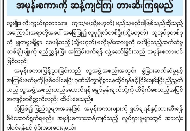 အမုန်းစကားကို ဆန့်ကျင်ကြ၊ တားဆီးကြရမည်