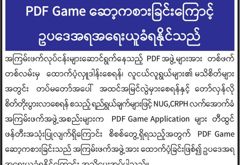PDF Game ဆော့ကစားခြင်းကြောင့် ဥပဒေအရ အရေးယူခံရနိုင်သည်