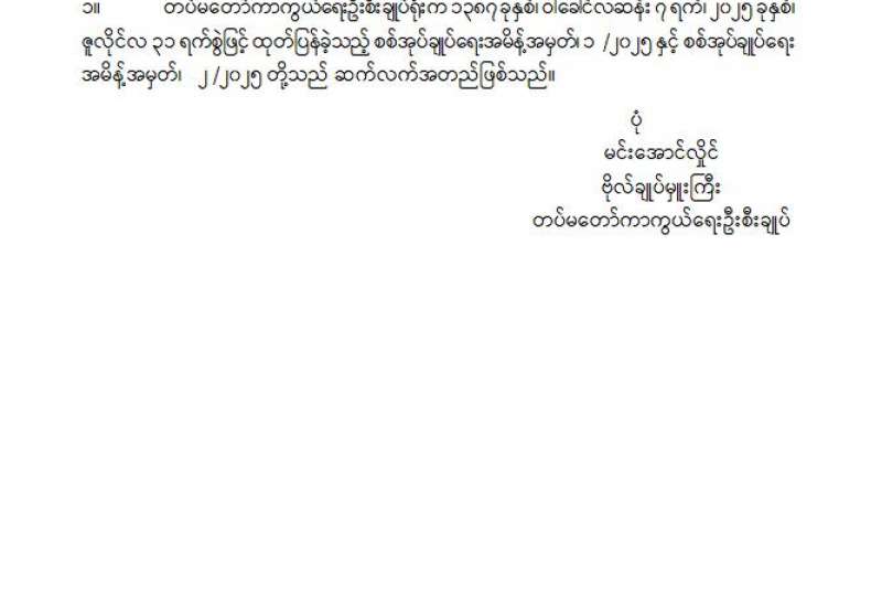 အမျိုးသားကာကွယ်ရေးနှင့်လုံခြုံရေးကောင်စီသည် စွမ်းအင်ဝန်ကြီးဌာန၊ ပြည်ထောင်စုဝန်ကြီးရုံး ညွှန်ကြားရေးမှူးချုပ် ဦးထက်သျှန်ဖြိုးကို အစမ်းခန့်ကာလ (၁) နှစ် ပြည့်မြောက်သည့်နေ့မှစ၍ အတည်ပြုခန့်ထားလိုက်သည်။
