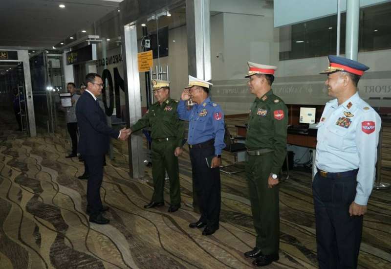 မြန်မာ့တပ်မတော် (ရေ) နှင့် ရုရှားရေတပ်နှစ်ရပ်အကြား ချစ်ကြည်ရင်းနှီးမှုနှင့် ပူးပေါင်းဆောင်ရွက်မှုများ ပိုမိုမြှင့်တင်နိုင်ရန် ရုရှားရေတပ်ဦးစီးချုပ် ဗိုလ်ချုပ်ကြီး Aleksandr A.Moiseev ၏ ဖိတ်ကြားချက်အရ အောက်တိုဘာ ၁၉ ရက်တွင် ရုရှားဖက်ဒရေးရှင်းနိုင်ငံသို့ ချစ်ကြည်ရေးခရီးသွားရောက်ခဲ့သည့် ကာကွယ်ရေးဦးစီးချုပ် (ရေ) ဗိုလ်ချုပ်ကြီးထိန်ဝင်း ဦးဆောင်သော တပ်မတော် (ရေ) ကိုယ်စားလှယ်အဖွဲ့သည် အောက်တိုဘာ ၂၇ ရက်၊ နံနက်ပိုင်းတွင် ရန်ကုန်မြို့သို့ လေကြောင်းခရီးဖြင့် ပြန်လည်ရောက်ရှိလာရာ ရန်ကုန်တိုင်းစစ်ဌာနချုပ်တိုင်းမှူး ဗိုလ်ချုပ်ပြည့်စုံလင်းနှင့် တပ်မတော်အရာရှိကြီးများ၊ မြန်မာနိုင်ငံအခြေစိုက် ရုရှားစစ်သံမှူး Colonel KURCHENKO Sergey Semenovich နှင့်တာဝန်ရှိသူများက ရန်ကုန်အပြည်ပြည်ဆိုင်ရာလေဆိပ်၌ ကြိုဆိုနှုတ်ဆက်ကြသည်။