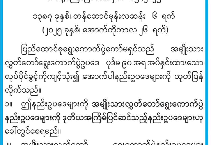 ပြည်သူ့လွှတ်တော်ရွေးကောက်ပွဲနည်းဥပဒေများ ပြင်ဆင်ထုတ်ပြန်