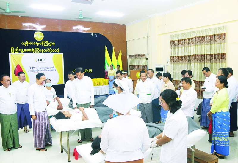 ပို့ဆောင်ရေးနှင့်ဆက်သွယ်ရေးဝန်ကြီးဌာန မြန်မာ့ဆက်သွယ်ရေးလုပ်ငန်း၏ (၁၇)ကြိမ်မြောက် စုပေါင်းသွေးလှူဒါန်းပွဲကို ယနေ့နံနက်ပိုင်းတွင် နေပြည်တော် ခုတင် (၁၀၀၀) အထွေထွေရောဂါကုဆေးရုံကြီး၌ကျင်းပရာ ပို့ဆောင်ရေးနှင့်ဆက်သွယ်ရေးဝန်ကြီး ဌာနမှဝန်ထမ်းများနှင့် စေတနာရှင်သွေးလှူရှင် စုစုပေါင်း ၄၃ ဦးတို့ ပါဝင်လှူဒါန်းကြသည်။