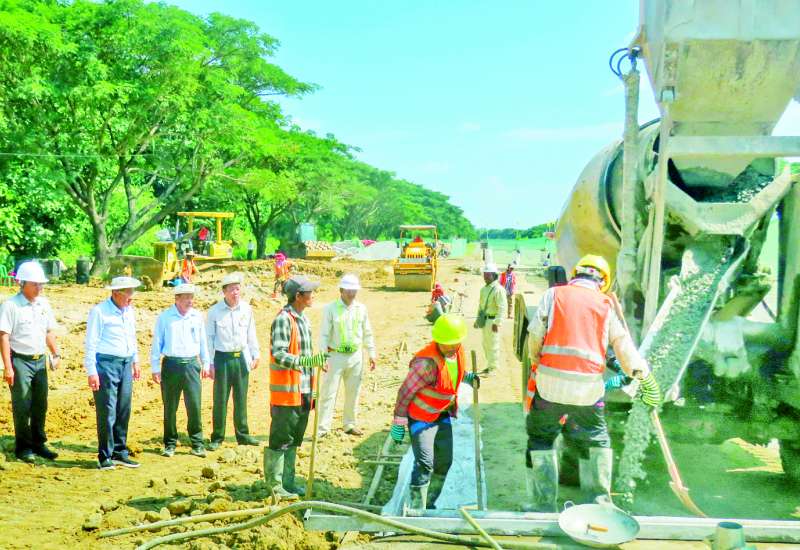 ဆောက်လုပ်ရေးဝန်ကြီးဌာန ဒုတိယဝန်ကြီး ဦးမျိုးမြင့်သည် မွန်ပြည်နယ် လမ်းပန်းဆက်သွယ်ရေးဝန်ကြီး ဦးတင်စန်းနိုင်နှင့်အတူ ယမန်နေ့က မွန်ပြည်နယ်အတွင်း တည်ဆောက်လျက်ရှိသည့် လမ်းလုပ်ငန်းများနှင့် ရန်ကုန်-မန္တလေး အမြန်လမ်းတို့အား ကြည့်ရှုစစ်ဆေးသည်။