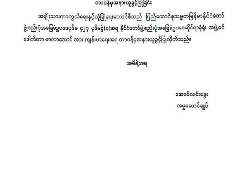 အကြမ်းဖက်အုပ်စုအဖြစ်ကြေညာထားသည့် CRPH၊ NUG နှင့် ယင်းတို့ ၏ လက်ဝေခံအဖွဲ့အစည်းများ၊ ယင်းတို့နှင့်ဆက်နွှယ်နေသော အဖွဲ့အစည်းများ၊ လူပုဂ္ဂိုလ်များသည် နိုင်ငံတော်တည်ငြိမ်အေးချမ်းရေးကို ပျက်ပြားစေရန်နှင့် အစိုးရယန္တရားများပျက်ပြားစေရန် ရည်ရွယ်လျက် လှုံ့ဆော်ခြင်း၊ ဝါဒဖြန့်ခြင်းများပြုလုပ်ခဲ့မှုအပေါ် ဥပဒေနှင့်အညီ ထိရောက်စွာအရေးယူသွားမည်ဖြစ်ကြောင်းနှင့် ထိုသို့ လှုံ့ဆော်သူ၊ ဝါဒဖြန့်သူများအား ဆက်လက်ဖော်ထုတ်အရေးယူသွားမည်ဖြစ်ကြောင်း မိဘပြည်သူများ သိရှိနိုင်ရေး အသိပေးသတင်းထုတ်ပြန်ပြီးဖြစ်သည်။