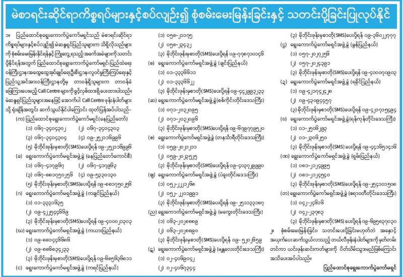 မဲစာရင်းဆိုင်ရာကိစ္စရပ်များနှင့်စပ်လျဉ်း၍ စုံစမ်းမေးမြန်းခြင်းနှင့် သတင်းပို့ခြင်းပြုလုပ်နိုင်