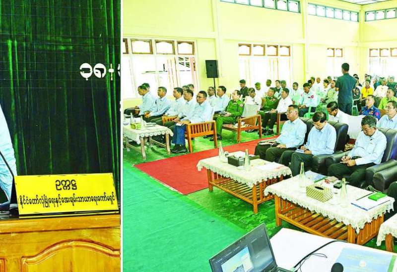 ရှမ်းပြည်နယ် (အရှေ့ပိုင်း)တာချီလိတ်မြို့၌ မြန်မာ-ထိုင်းနယ်စပ် ရေကြီးရေလျှံမှု ကာကွယ်နိုင်ရေးအတွက် မယ်ဆိုင်ချောင်းတစ်လျှောက် တူးဖော်ရေးနှင့် မြေထိန်းနံရံပြုလုပ်ရေး ညှိနှိုင်းအစည်းအဝေးကို ယမန်နေ့နံနက်ပိုင်းက ဝမ်ကောင်းရပ်ကွက်ရှိ လမ်းဦးစီးရိပ်သာအစည်းအဝေးခန်းမ၌ ကျင်းပရာ ပို့ဆောင်ရေးနှင့်ဆက်သွယ်ရေးဝန်ကြီးဌာန ဒုတိယဝန်ကြီး ဦးအောင်ကျော်ထွန်း၊ ဆောက်လုပ်ရေးဝန်ကြီးဌာန ဒုတိယဝန်ကြီး ဦးမျိုးမြင့်နှင့် တာဝန်ရှိသူများ တက်ရောက်ကြ သည်။