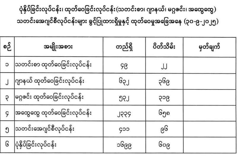 ရန်ကုန်မြို့နှင့် မန္တလေးမြို့အတွက် ရည်ညွှန်းလက်ကားဈေးနှုန်းများနှင့် ပြည်ထောင်စုနယ်မြေ နေပြည်တော်၊ တိုင်းဒေသကြီး/ ပြည်နယ် မြို့တော်များအတွက် ရည်ညွှန်းလက်လီဈေးနှုန်းများ