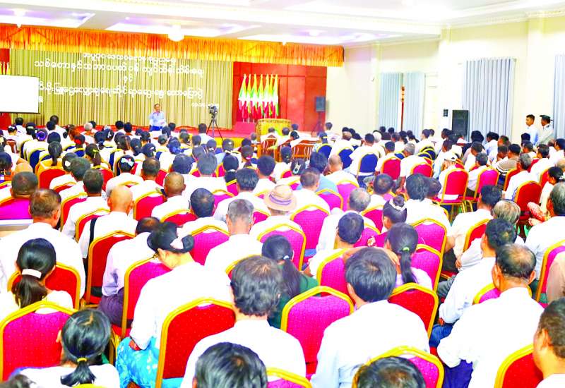 စက်မှုလုပ်ငန်းနှင့် စက်မှုဇုန်ဖွံ့ဖြိုးတိုးတက်ရေး ဗဟိုကော်မတီဥက္ကဋ္ဌ၏ လမ်းညွှန်ချက်များအား ထပ်ဆင့်ရှင်းလင်းခြင်းအခမ်းအနားကို ယနေ့မွန်းလွဲပိုင်းတွင် ရန်ကုန်တိုင်းဒေသကြီး မရမ်းကုန်းမြို့နယ် ကျိုက်ဝိုင်းရှိ အသေးစား၊ အငယ်စားနှင့် အလတ်စားလုပ်ငန်းများ ဖွံ့ဖြိုးတိုးတက်ရေးဗဟိုဌာန၌ ကျင်းပသည်။